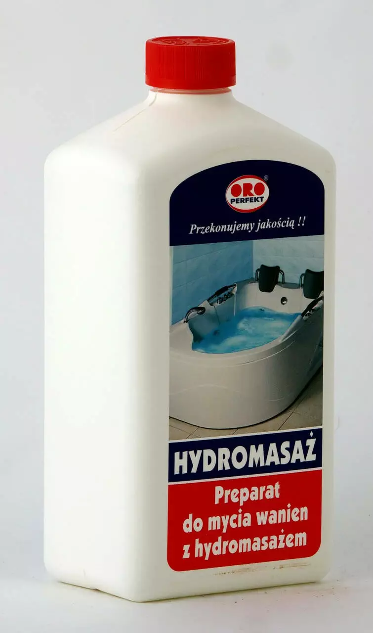 У ваннах з гідромасажем, обладнаних дозатором. Після ванни у воду з ванни влити 200 мл рідини для миття ванн з гідромасажем. Рівень води повинен бути таким, щоб форсунки були під водою. Залиште приблизно на 30 хвилин, кілька разів увімкнувши циркуляційний насос на 1-2 хвилини. Потім злийте воду та ненадовго запустіть насос, щоб змити залишки рідини. Потім ретельно промийте ванну. Щоб видалити мікроби після тривалого періоду невикористання ванни, наповніть ванну водою перед прийняттям ванни, додайте 400 мл засобу для чищення ванн, а потім дійте, як описано вище.