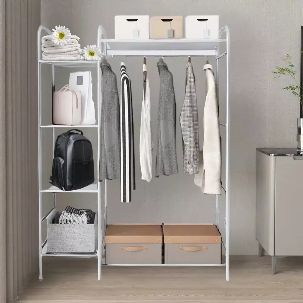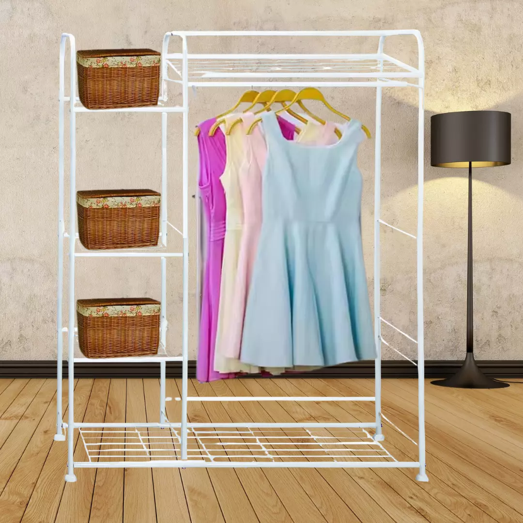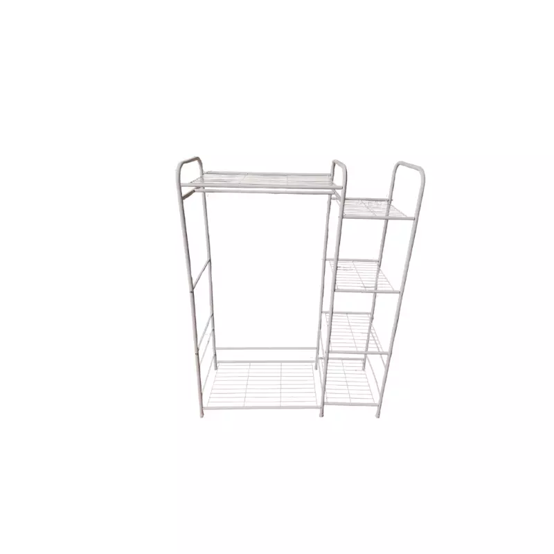 Стеллаж на 4 яруса с перекладиной для тремпелей и полкой для обуви