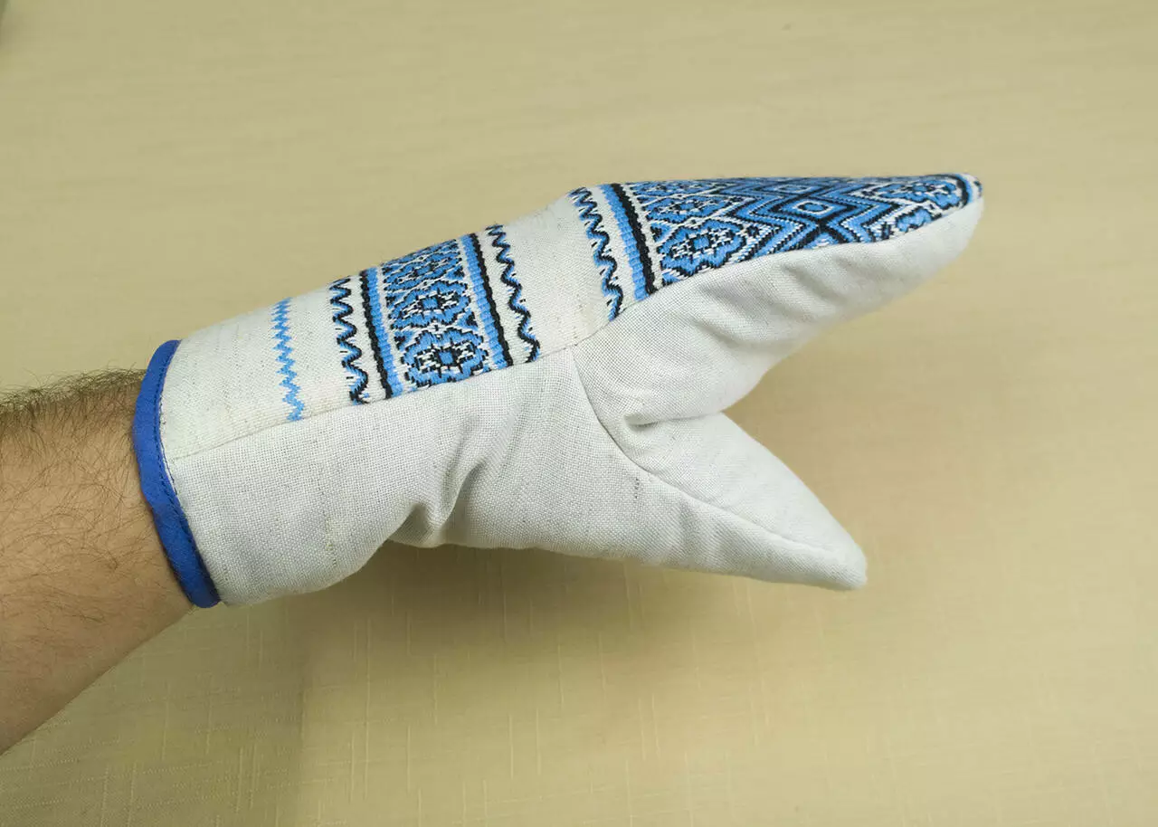 Льняная прихватка-варежка для кухни непременно станет верным помощником хозяйки! Достаточно плотная ткань и мягкий наполнитель позволяют прихватке долго служить Вам и оберегать Ваши ладони от перегревания во время готовки. Этнический орнамент добавит в интерьер народных нот. Всегда на своем месте этот кухонный аксессуар будет благодаря петельке.