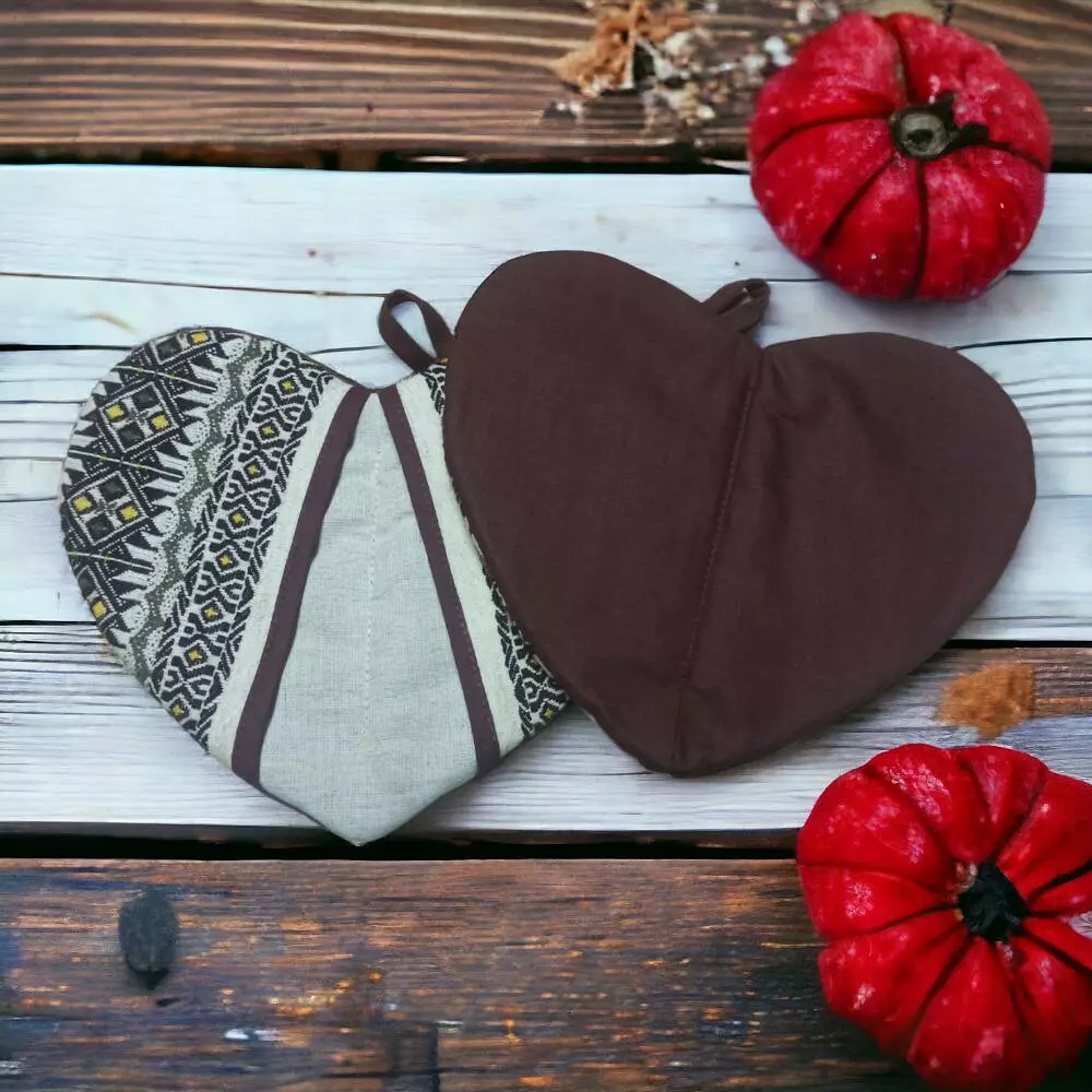 Красочные прихватки для кухни "Сердце"
