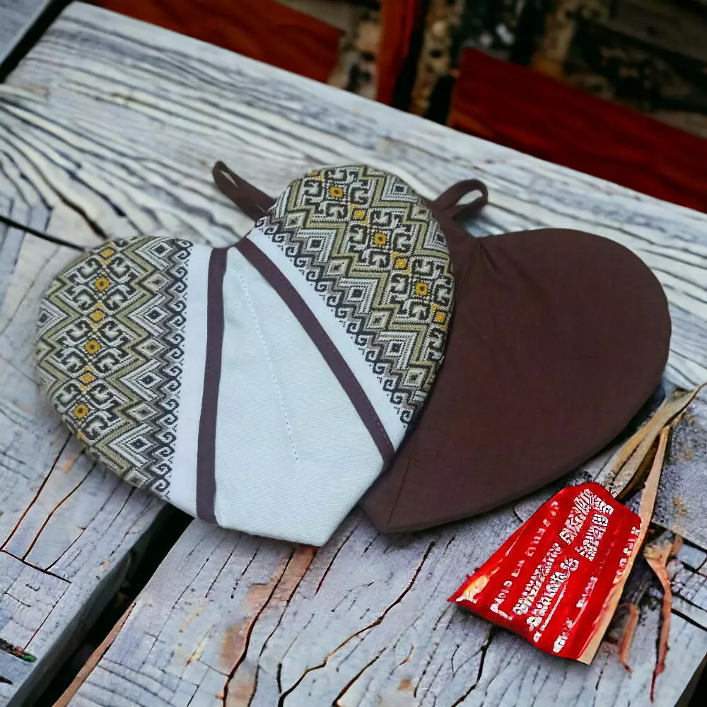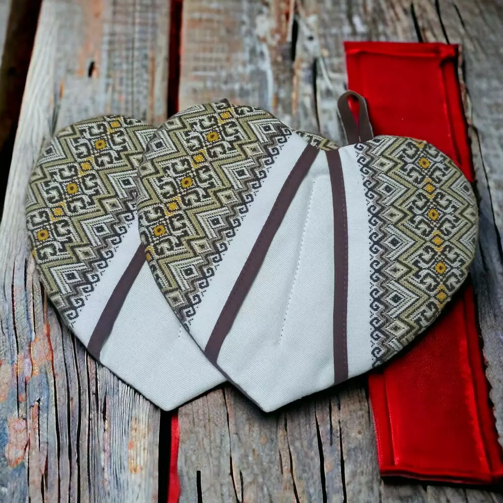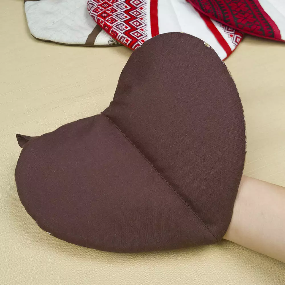 Неординарные прихватки на кухню "Сердце" (коричневый)