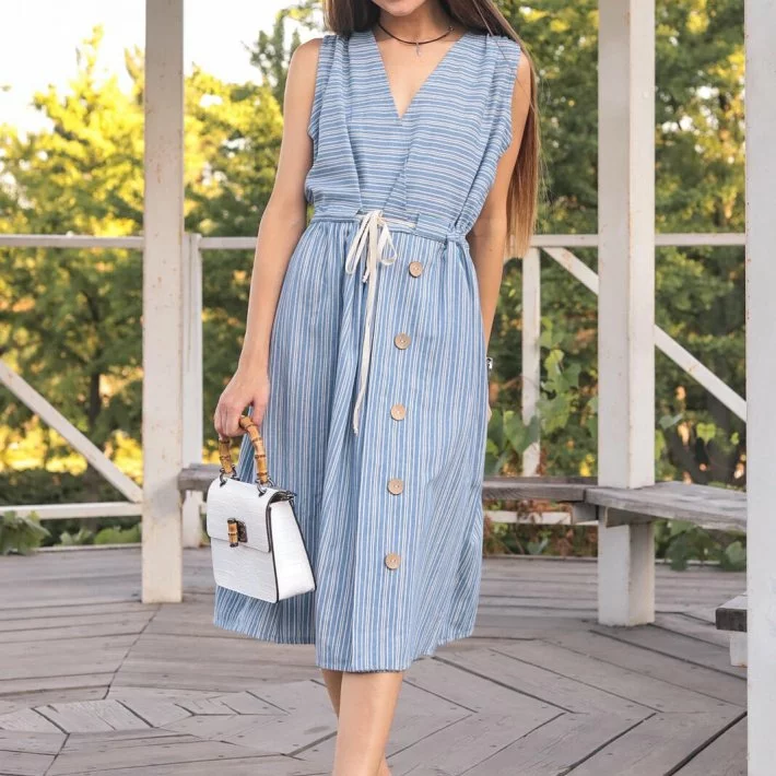 Сукня з натуральної лляної тканини вільного крою. Перед -