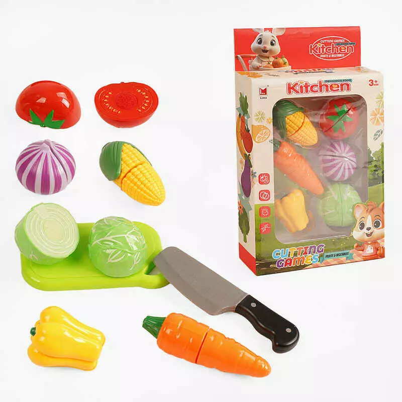 Продукти на липучках 1294 B (60/2) 6 овочів, ніж та дошка для нарізання, в коробці