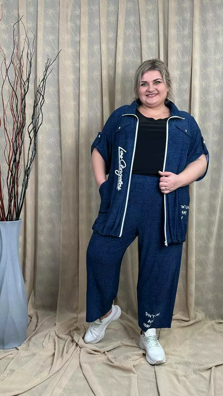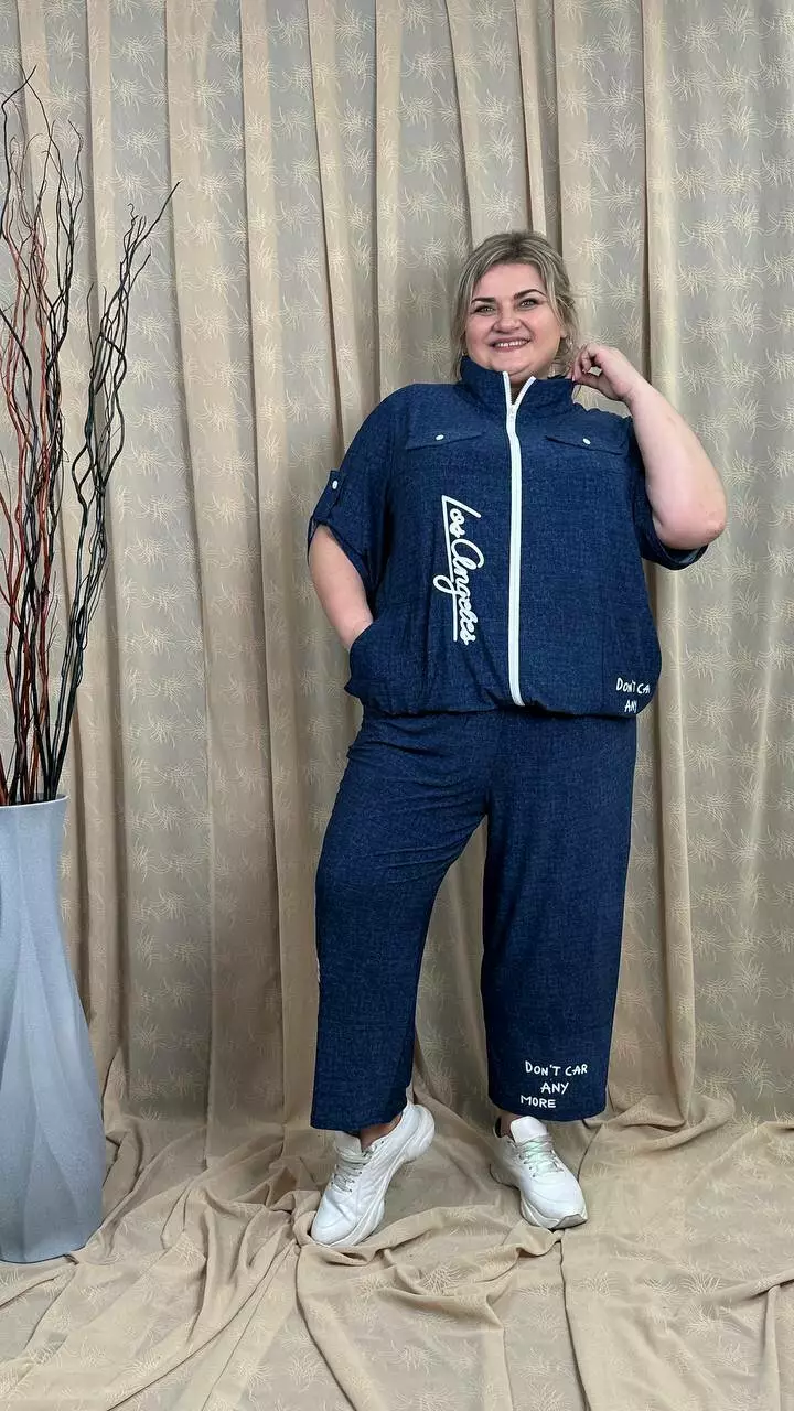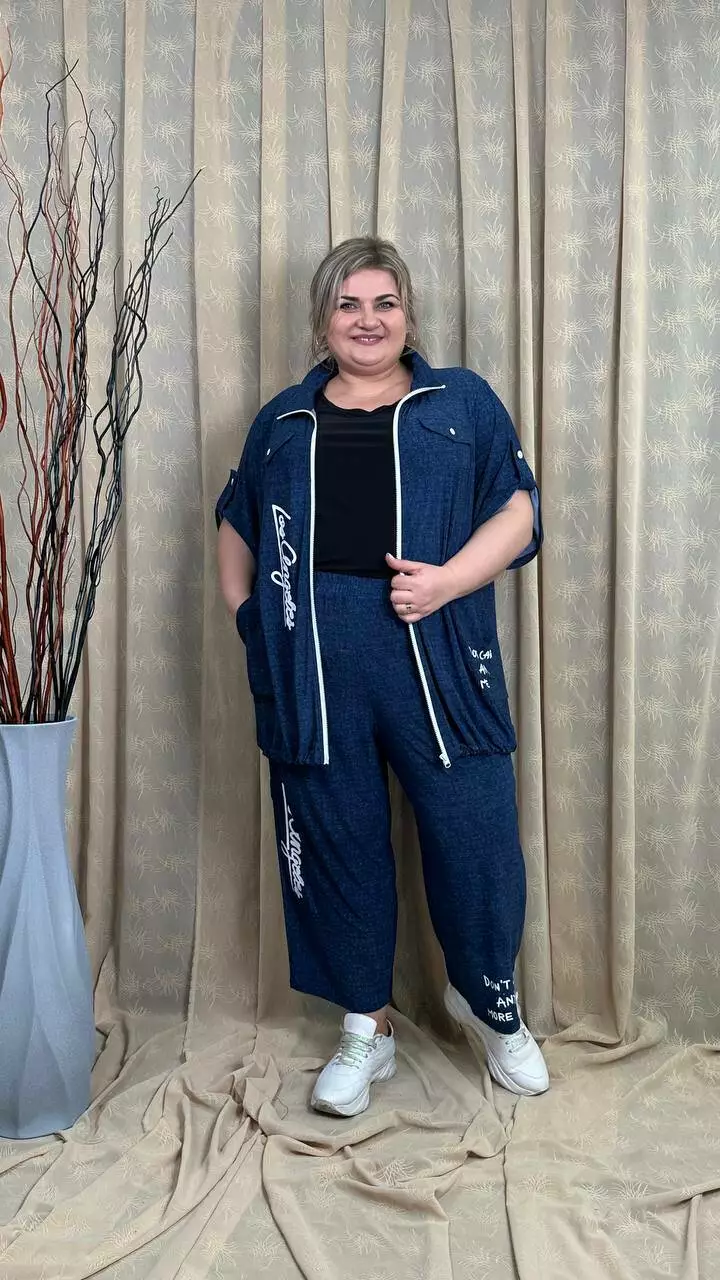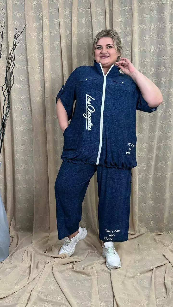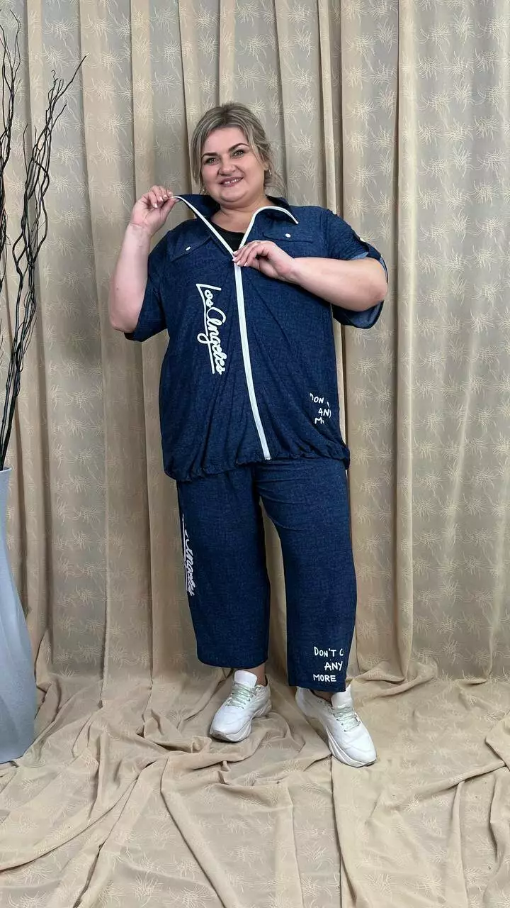 Прогулянковий костюм (кофта на блискавці + капрі) "Дизель" Батал 62-64 66-68 70-72 74-76
