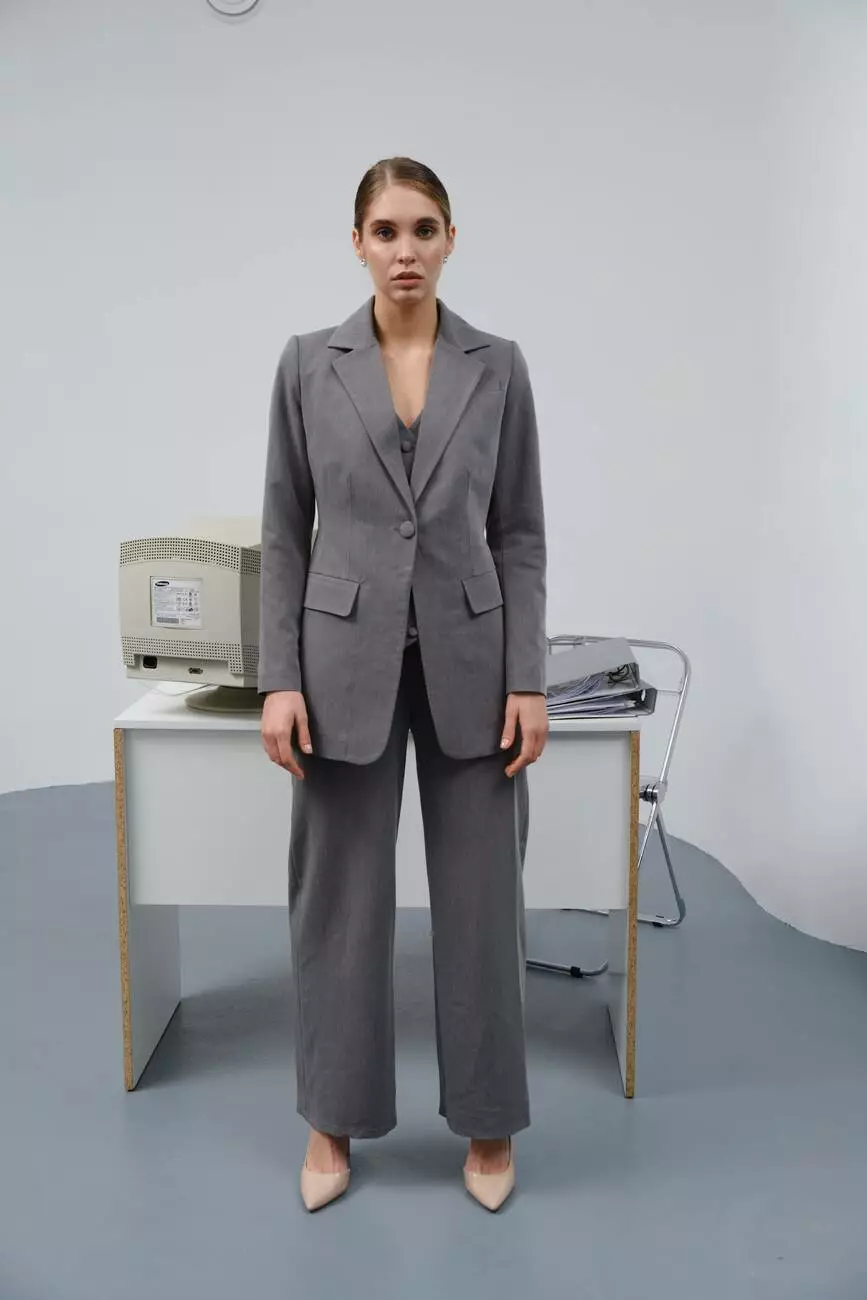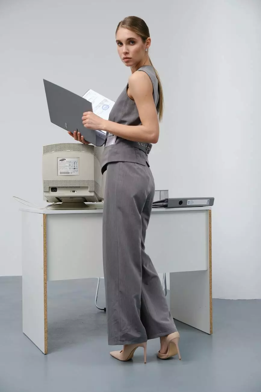 Для створення повного образу рекомендуємо поєднати ці брюки з жилетом та піджаком у такому ж сірому кольорі. Завдяки цьому ви підкреслите свій неповторний стиль та вишуканість, привертаючи до себе захоплені погляди. Також, звертаємо увагу, що брюки доступні до замовлення в 3-х довжинах: mini, midi та maxi.