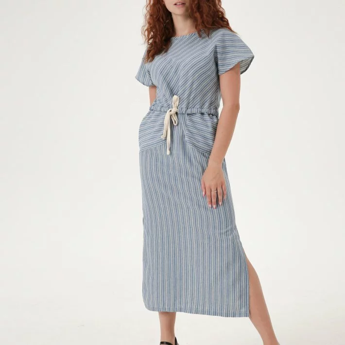 Довге плаття прямого силуету з натурального льону. На спідниці