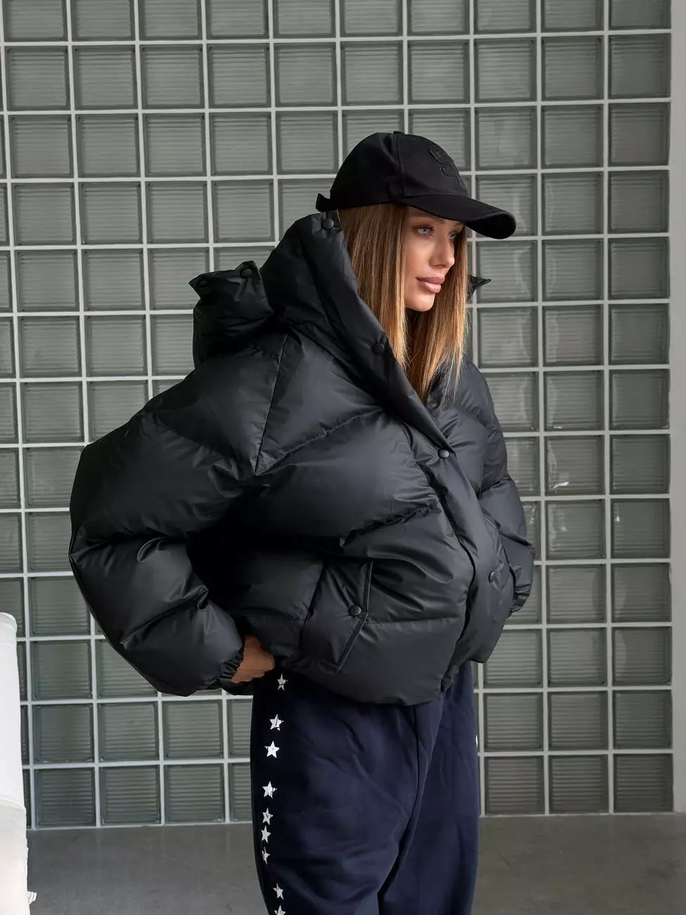 Зимовий пуховик, виконаний з плащівки на мембрані, що є непродувною і водонепроникаючою.