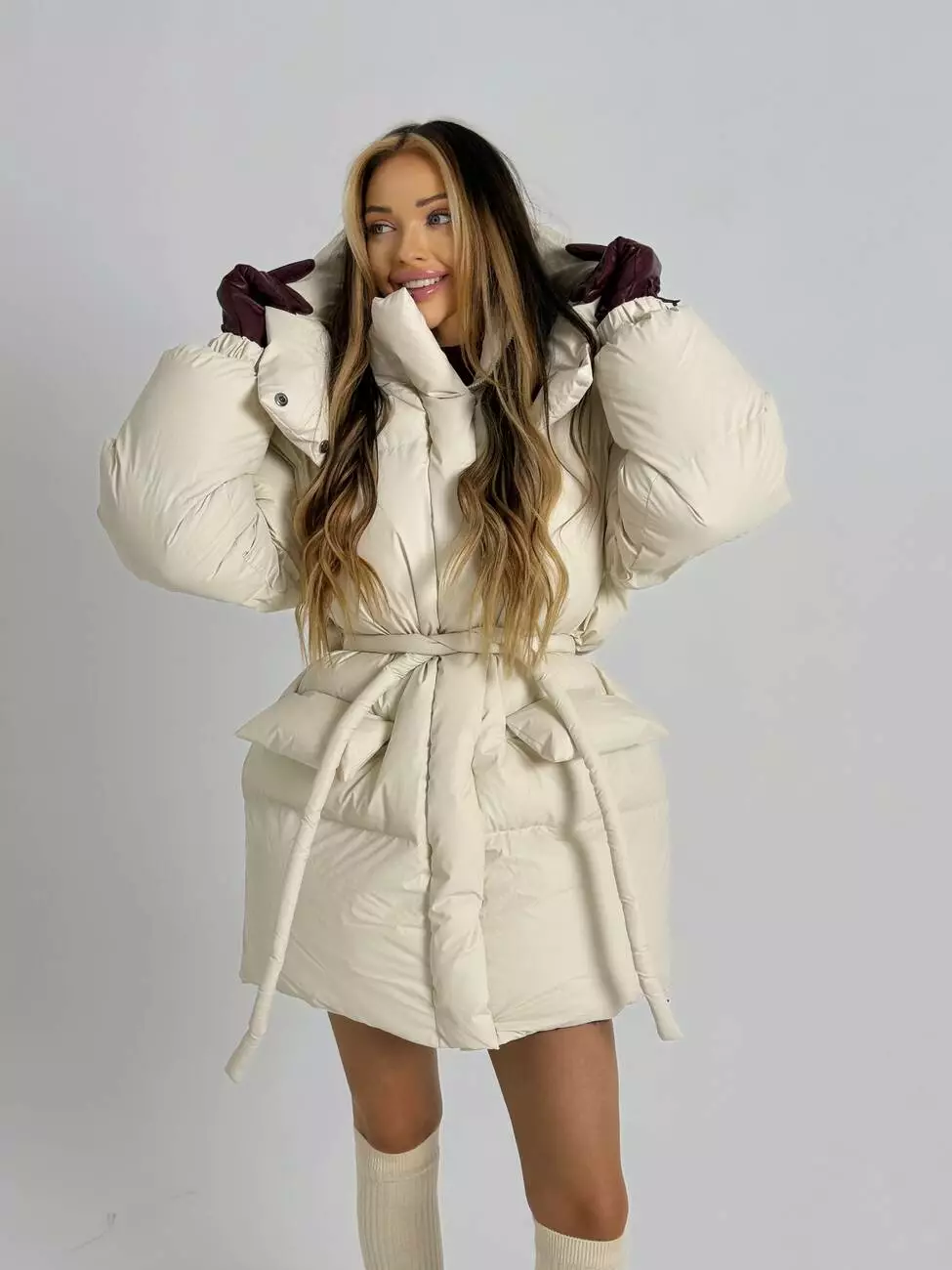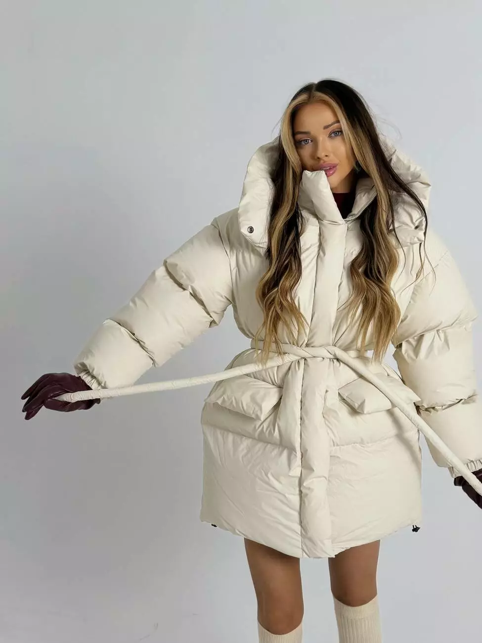 Зимовий ПУФЕР виконаний з плащівки , що є непродувною і водонепроникаючою, прямого крою В комплекті йде пояс ,достатньо обʼємна
