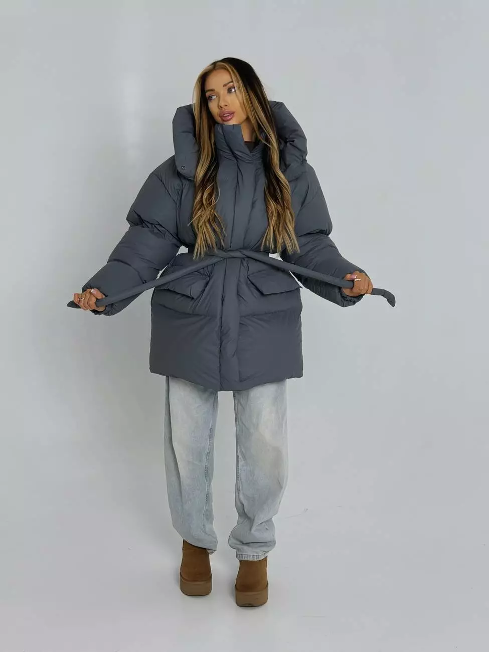 Зимовий ПУФЕР виконаний з плащівки , що є непродувною і водонепроникаючою, прямого крою В комплекті йде пояс ,достатньо обʼємна