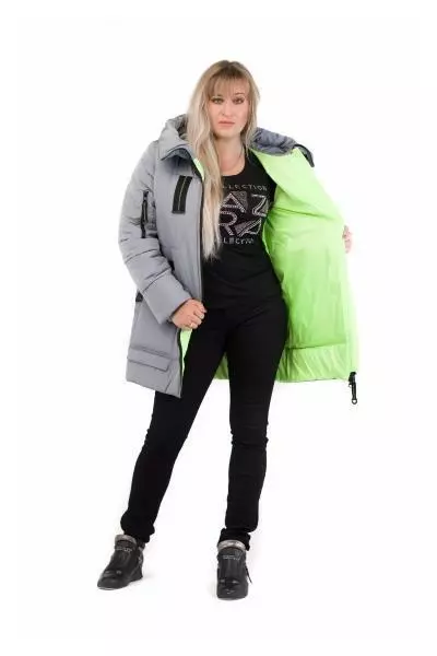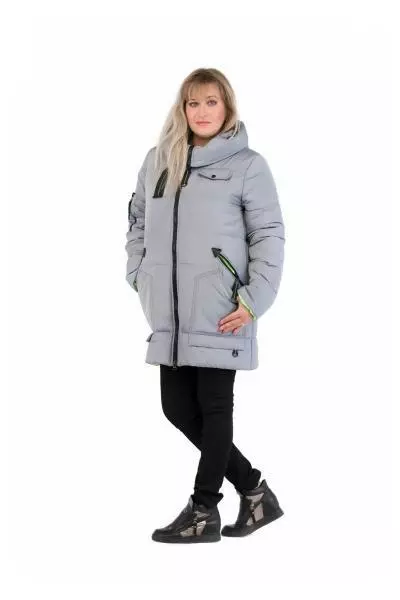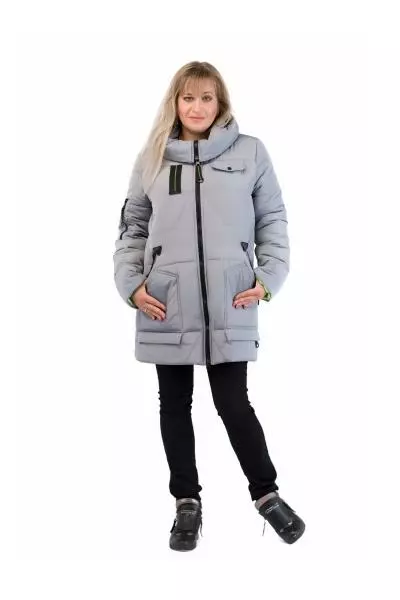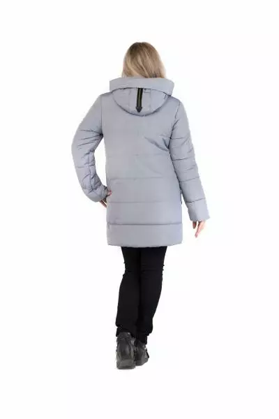 зимнего пуховика прямого кроя, выполненная в серебряном цвете.