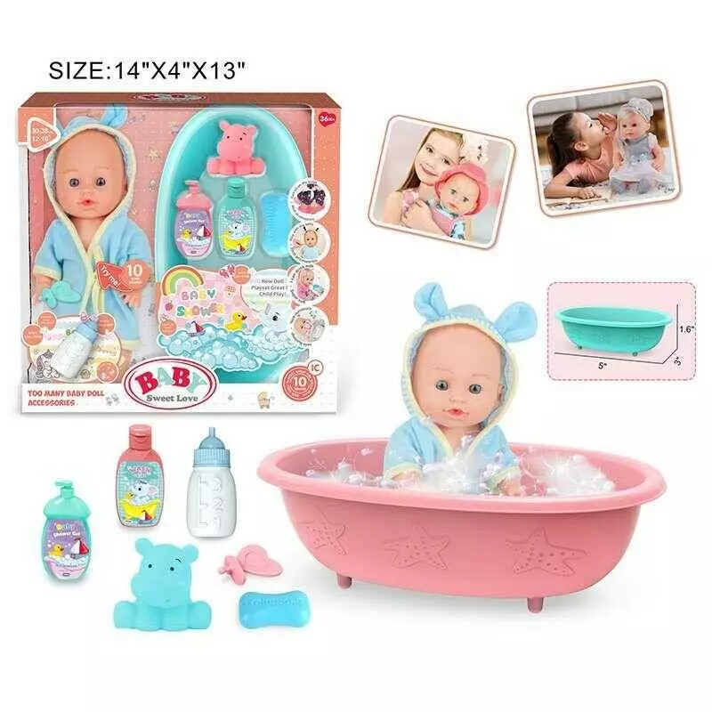Головна > Каталог > Іграшки > Ляльки > Пупс 6933 B-1 (24) висота 26 см, звукові ефекти, сміється та плаче, п’є, ходить на горщик, ванна довжиною 32 см, пустушка, мило, пляшечка, в коробці оптом