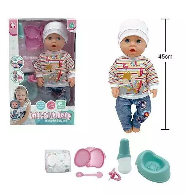Головна > Каталог > Іграшки > Ляльки > Пупс BL 251 K (12) висота 45 см, п`є з пляшечки, ходить на горщик, заплющує очі, знімний одяг, аксесуари, в коробці оптом