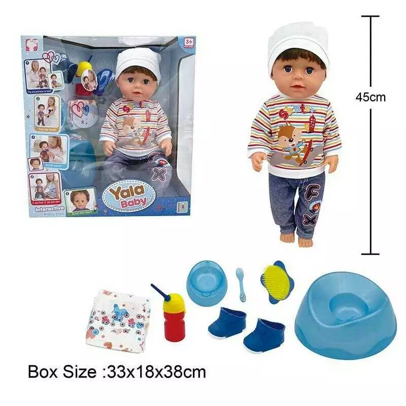 Головна > Каталог > Іграшки > Ляльки > Пупс BLB 002 H (8) п`є з пляшечки, ходить на горщик, заплющує очі, плаче сльозами, аксесуари, висота 45 см, в коробці оптом