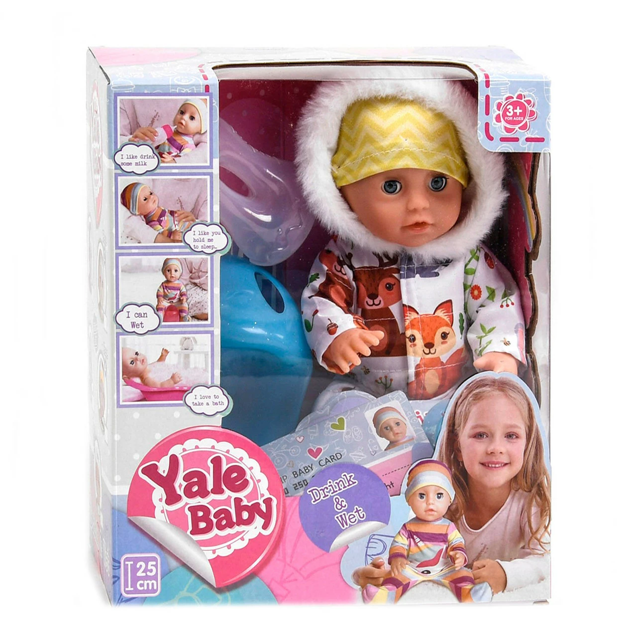 бутылочкой, горшком, соской и ID-картой. Рост пупса - 25 см.