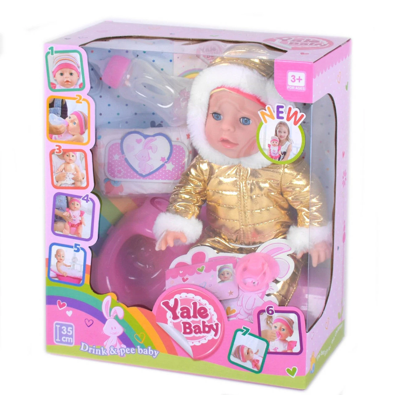 Пупс функциональный Kimi с аксессуарами 35 см Золотой 6982662588055