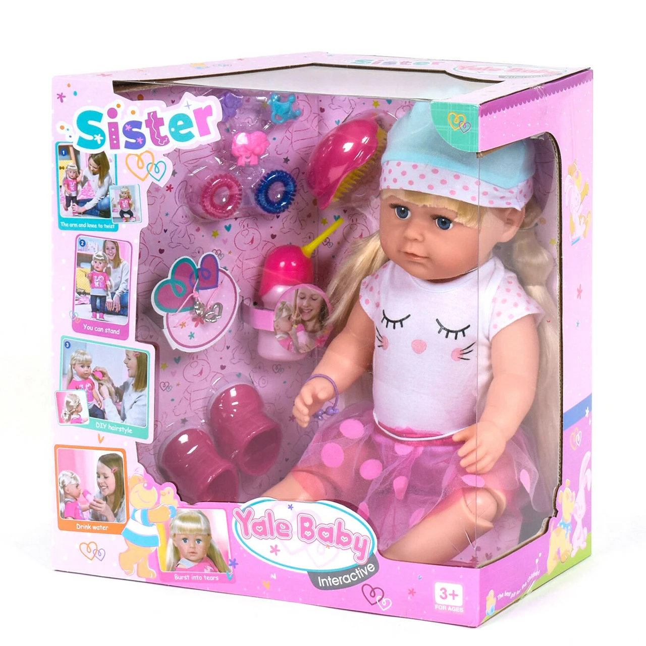 Пупс Kimi - любимая сестра милого пупса этой же серии игрушек. У сестрички длинные шелковистые волосы, которые можно расчесывать, заплетать в косы, создавать модные прически. Пупс может самостоятельно стоять, сидеть, у нее двигаются ручки и ножки (колени на шарнирах, легко сгибаются), пить воду и писать, если нажать кнопку на пупке, плакать настоящими слезами и закрывать глазки, если ее уложить на спину. Если нажать на ручку сестрички, пупс запищит. В наборе с пупсом: бутылочка, щетка для расчесывания волос, заколки, украшения, модная обувь. Бутылочка для питья воспроизводит забавные звуки и работает от батареек (входя в комплект).
