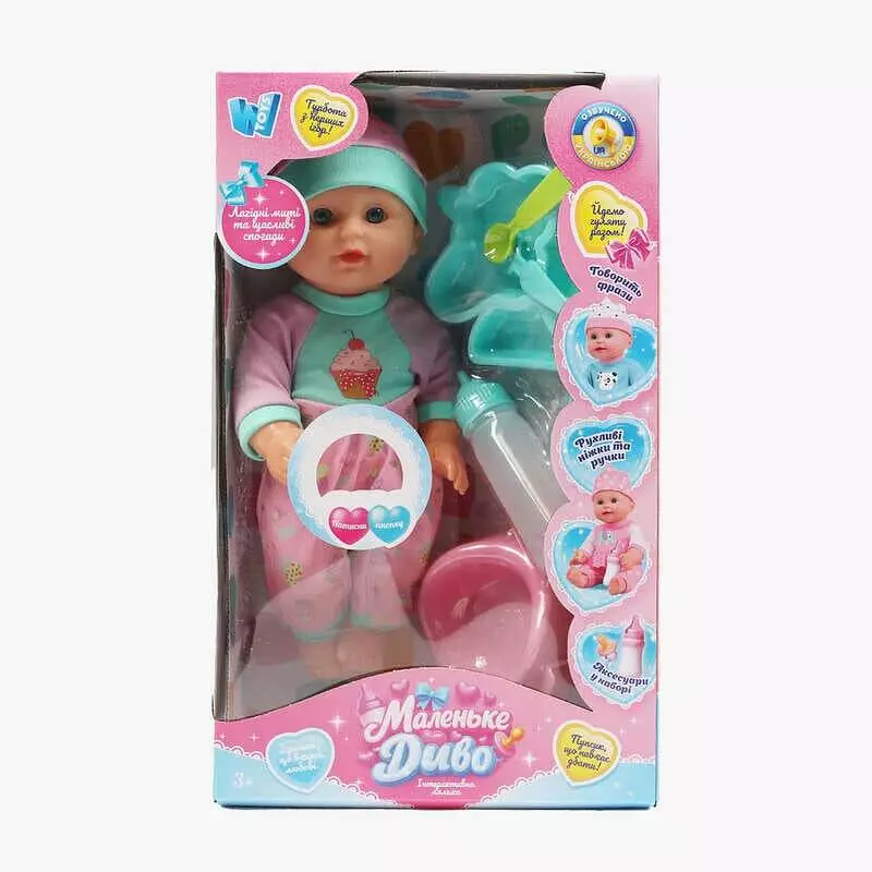 Пупс функціональний UKA-A 0940-9 (32) "WToys", ОЗВУЧУВАННЯ УКРАЇНСЬКОЮ МОВОЮ, звук, від батарейок, п`є, ходить в туалет, в коробці