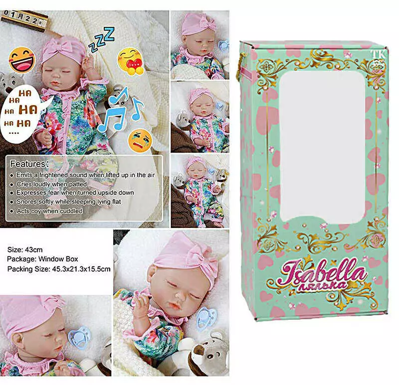 Пупс QM 240019 A (12) "TK Group", функціональний, датчик руху, звуки, висота: 42 см, гумовий, озвучені репліки англ. мовою, аксесуари, в коробці