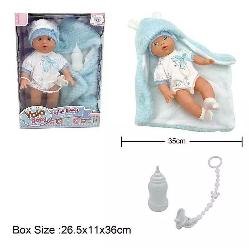 Пупс YL 2435 B-D (24) гумовий, висота 33 см, п’є, ходить на горщик, пелюшка, пляшечка, пустушка, знімний одяг, в коробці