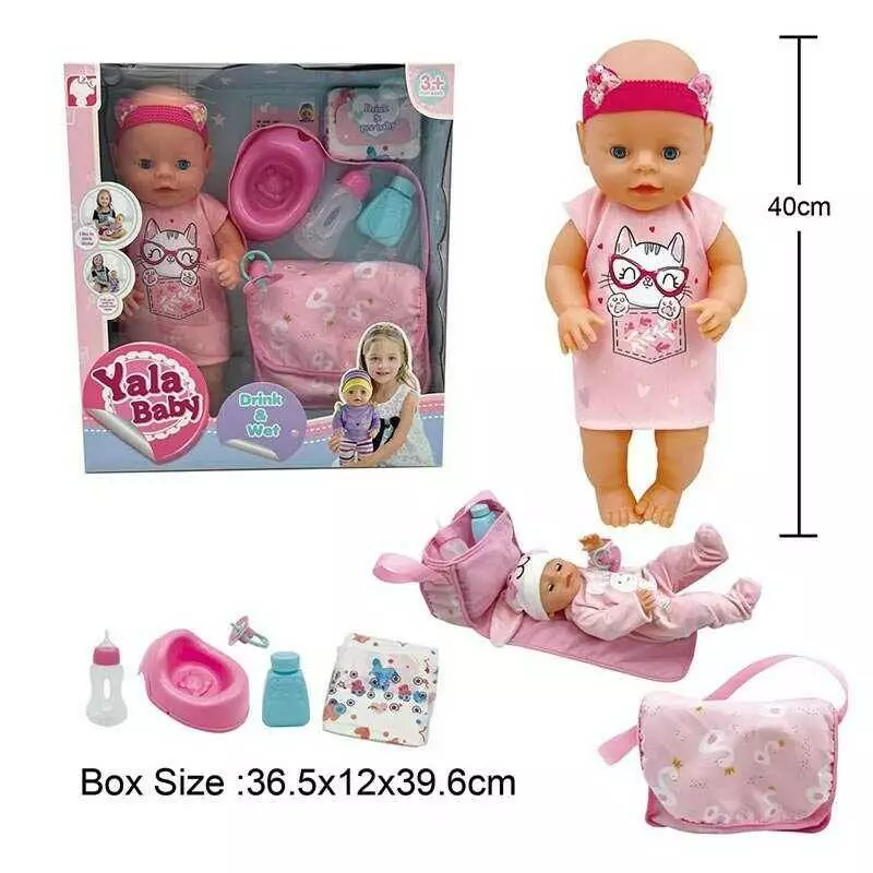 Головна > Каталог > Іграшки > Ляльки > Пупс YL 2440 H-G (12) заплющує очі, п’є з пляшки, ходить на горщик, аксесуари, висота 40 см, сумка, в коробці оптом