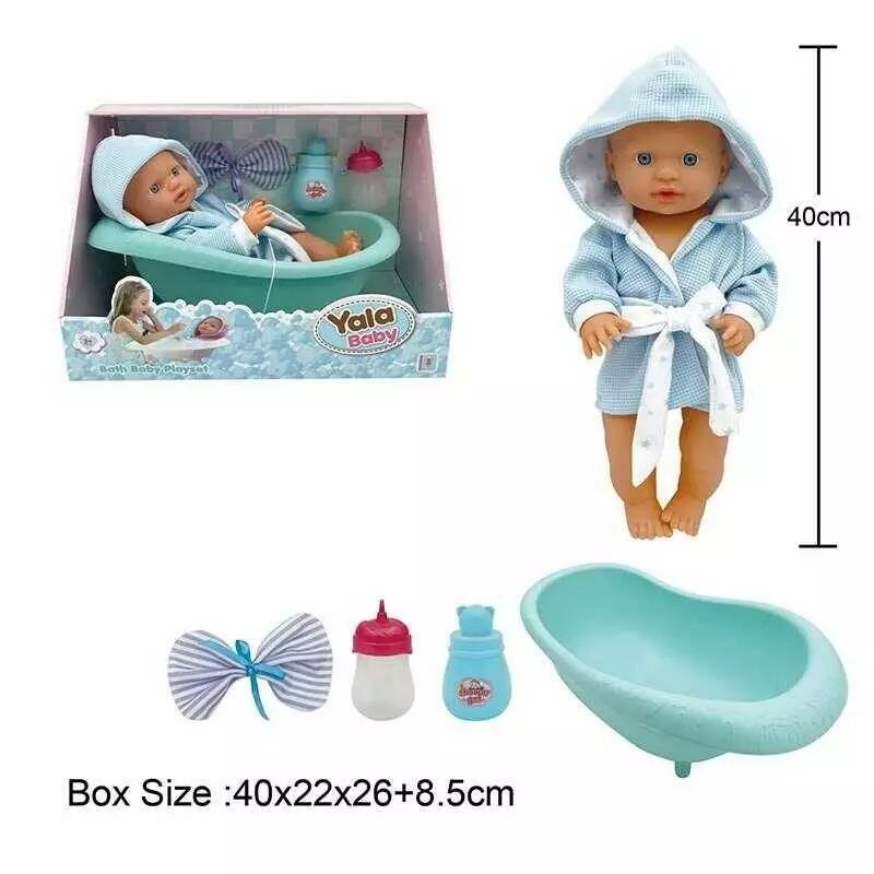 Пупс YL 2440 J-D (12) висота 40 см, п`є з пляшечки, ходить на горщик, ванна, халат, рушничок, в коробці