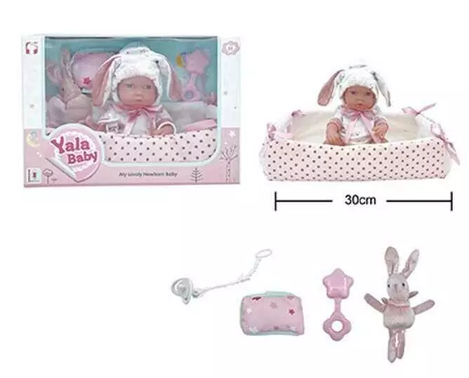 Пупс YL 2512 D-C (24) гумовий, висота 30 см, кокон з ручками, подушечка, брязкальце, пустушка, в коробці