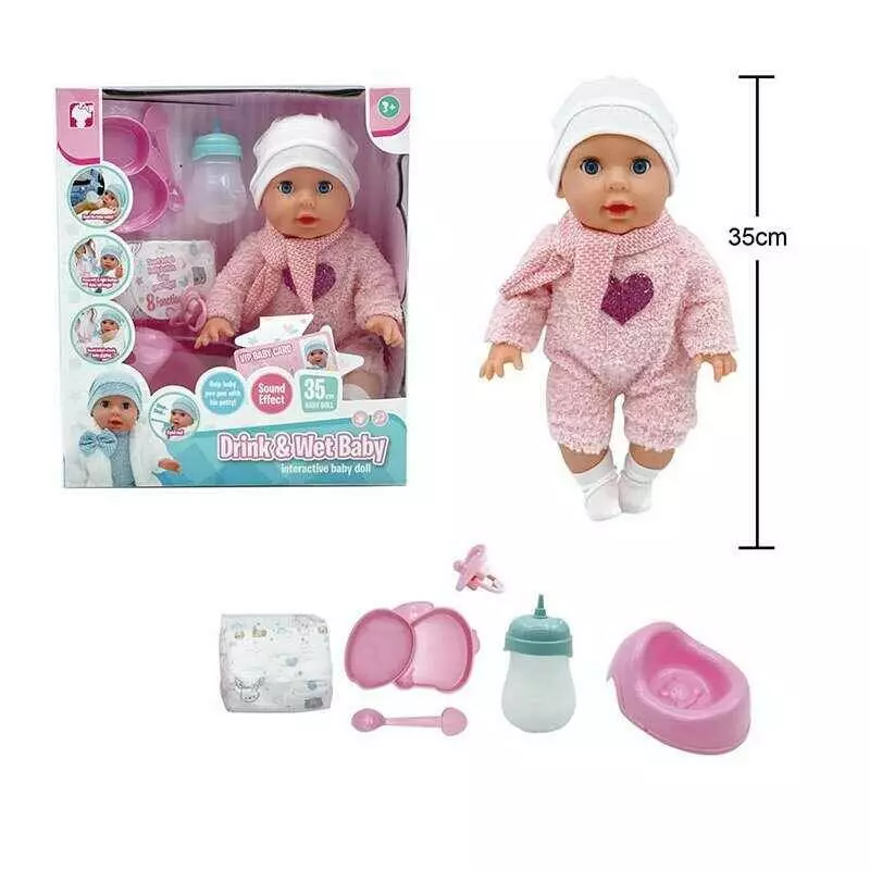 Пупс YL 2535 A-A (12) висота: 35 см, на батарейках, звуки, сенсорні датчики, п’є, “ходить” на горщик, заплющує очі, аксесуари, в коробці