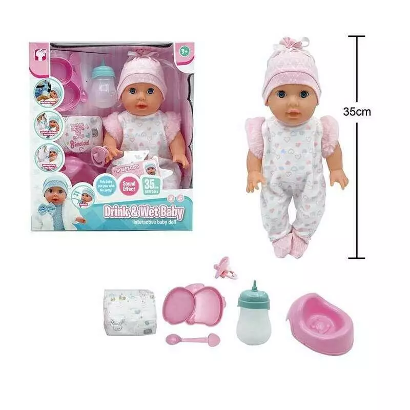 Пупс YL 2535 A-D (12) висота: 35 см, на батарейках, звуки, сенсорні датчики, п’є, “ходить” на горщик, заплющує очі, аксесуари, в коробці