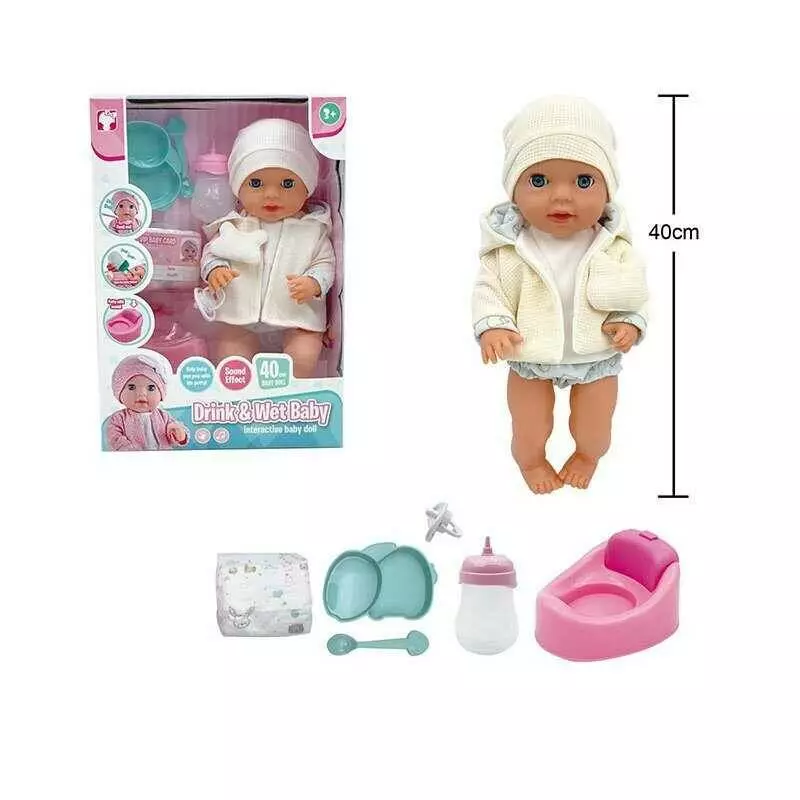 Пупс YL 2540 A-L (12) висота 40 см, заплющує очі, “ходить” на горщик, п’є, горщик, звуки, аксесуари, в коробці