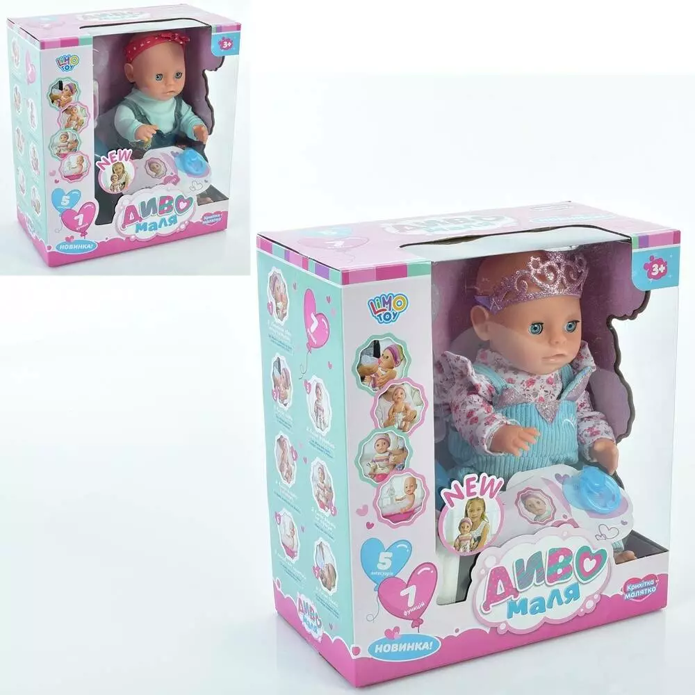 Пупс YL2235B-C-DM-UA п'є-пісяє, горщик, пляшка, соска, підгузки, 2 види, кор., 29,5-26,5-14,5 см.