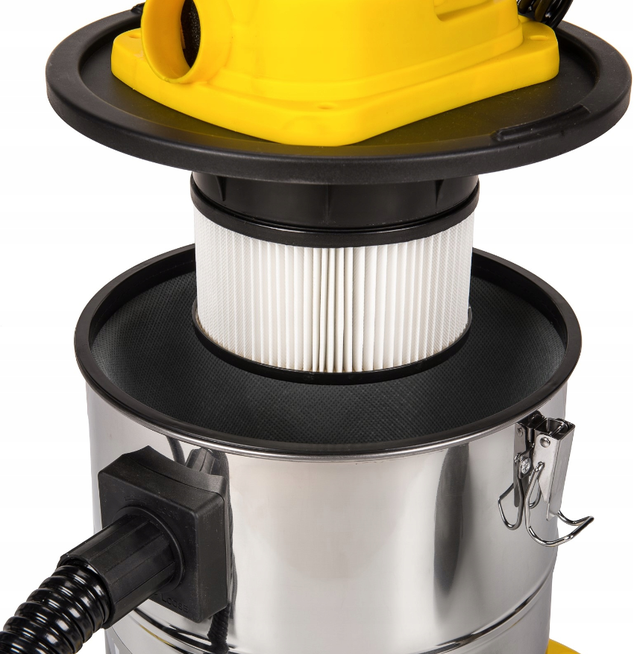 Жаростойкий бак из нержавеющей стали емкостью 20 литров позволяет работать без частого высыпания золы. Благодаря большой емкости бака мы можем легко использовать устройство в качестве промышленного пылесоса.