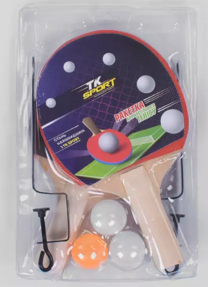 Ракетка С 34457 для пінг-понгу (50) "TK Sport" з сіткою, 2 ракетки + 3 кульки, в слюді