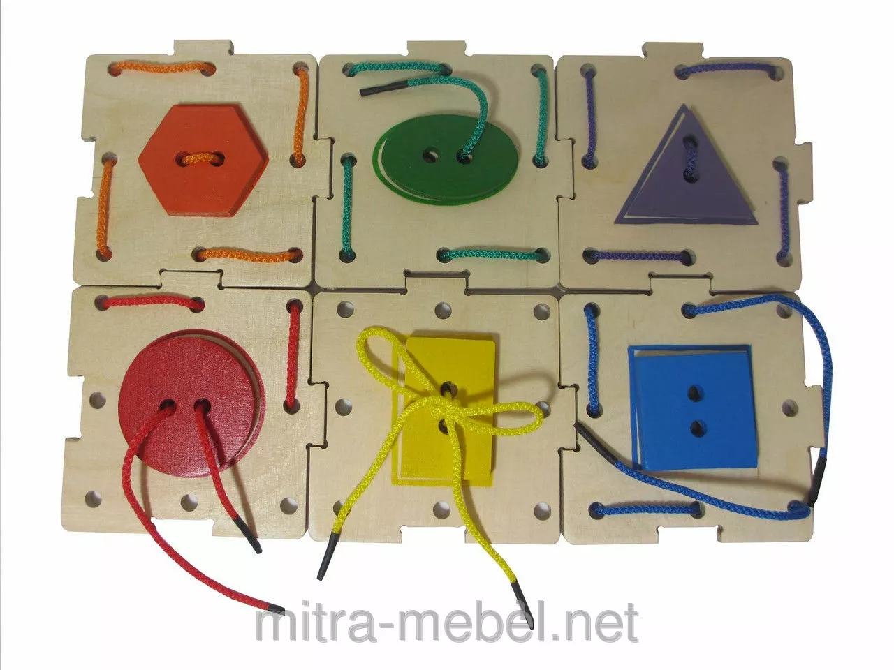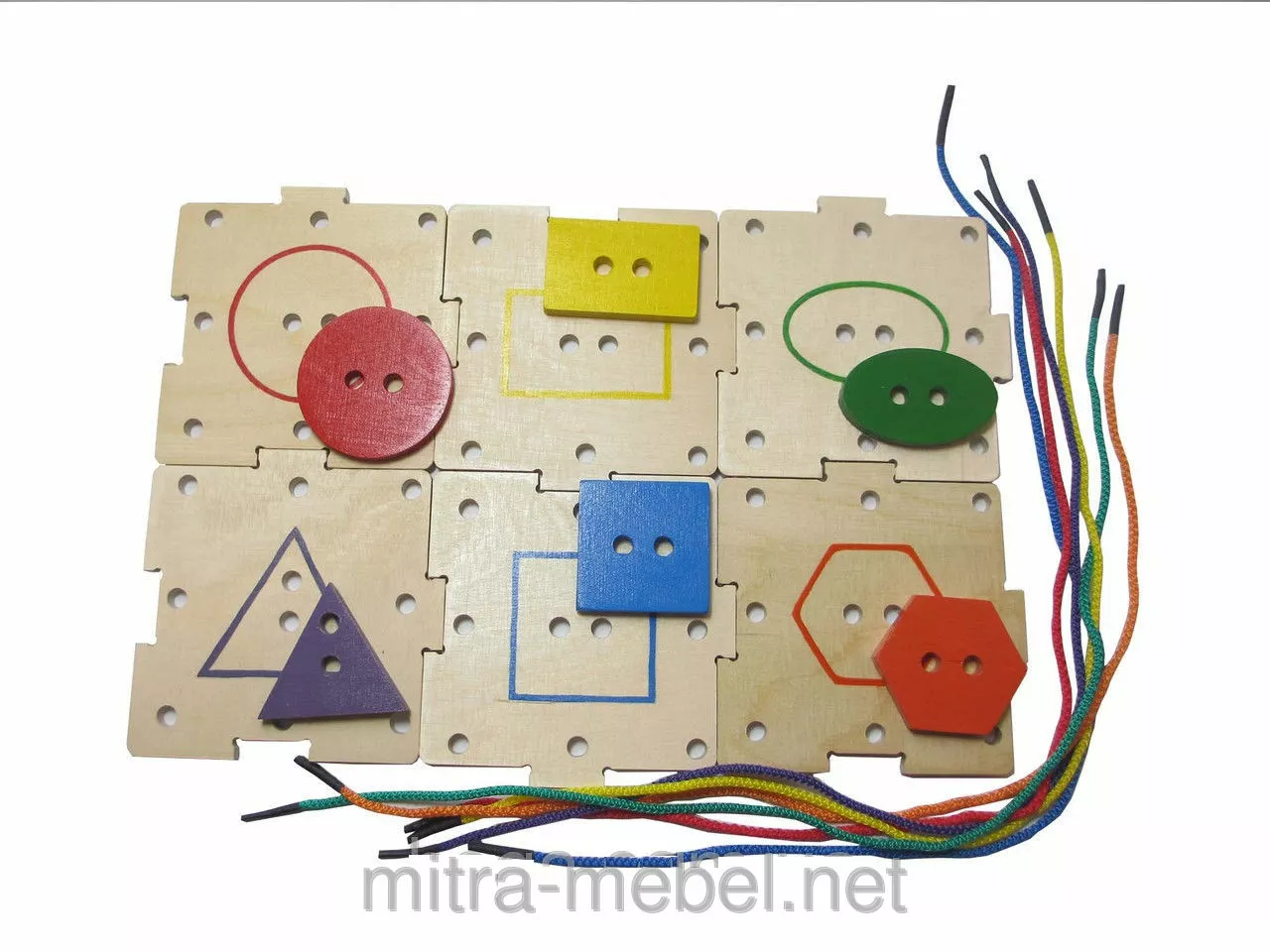 квадратных пластин, 6 геометрических фигур, 6 шнурков. ?гры с