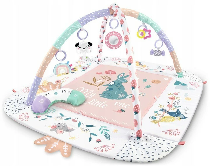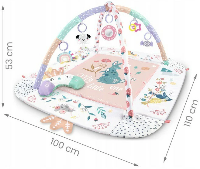 • Постельные цвета, эргономичные игрушки, которые поддерживают развитие ребенка, а благодаря съемным палочкам коврик останется с ребенком дольше.