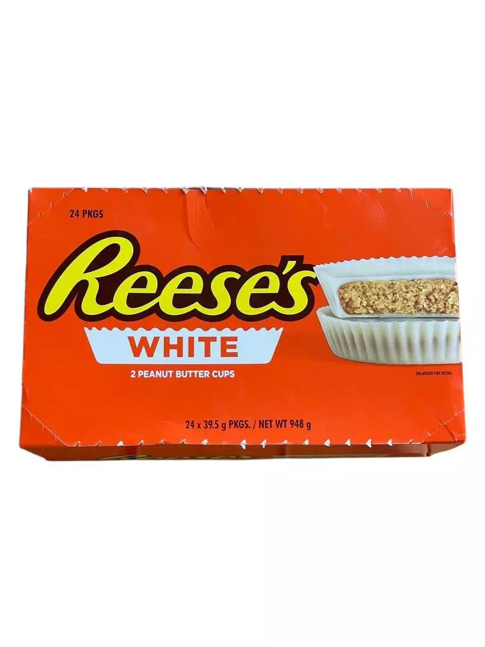 Reese's White Cups — легендарные американские сладости теперь в белом шоколаде! Две нежные чашки из белого шоколада с фирменной арахисовой пастой внутри. Идеальное сочетание сладости и солёной нотки ореха покоряет с первого укуса.