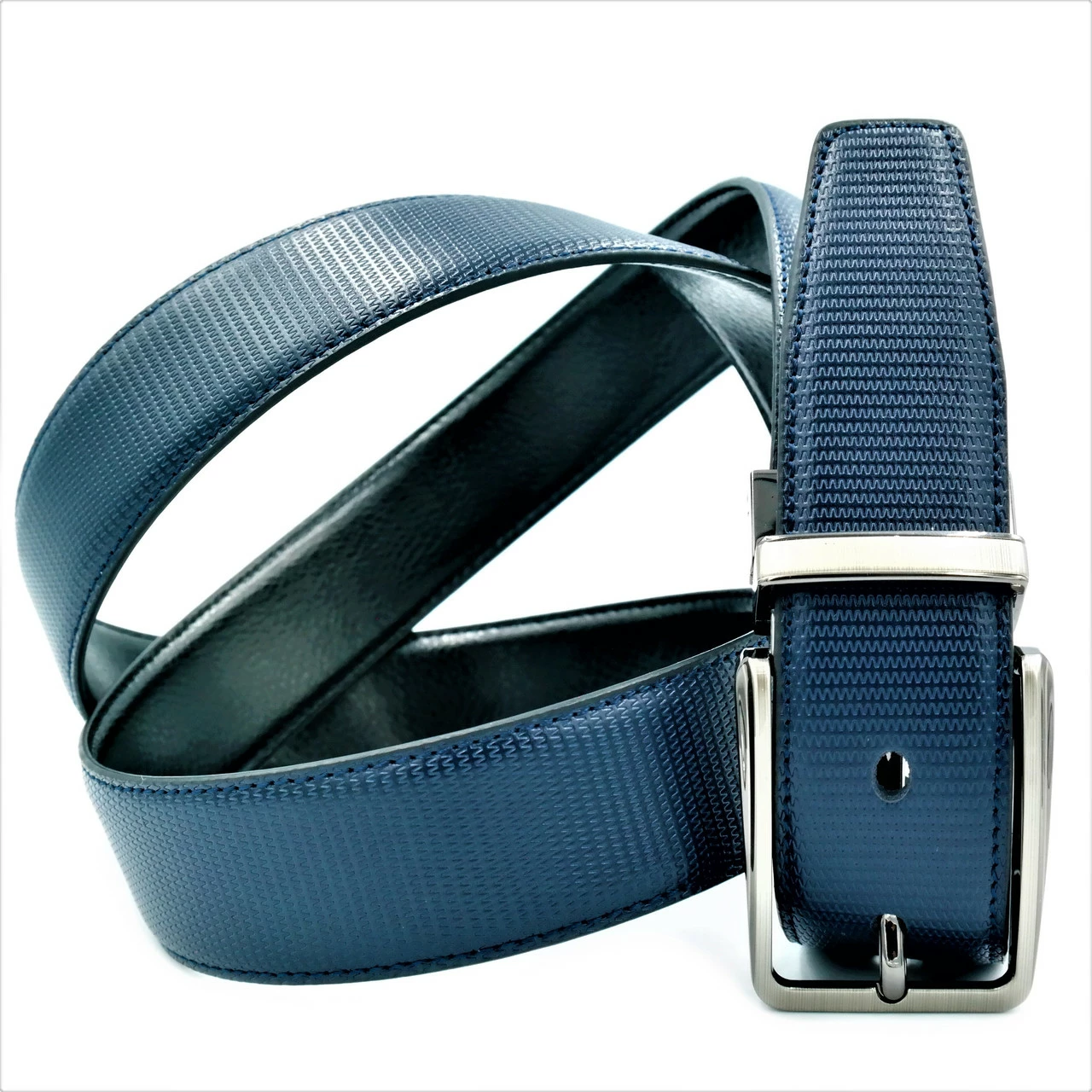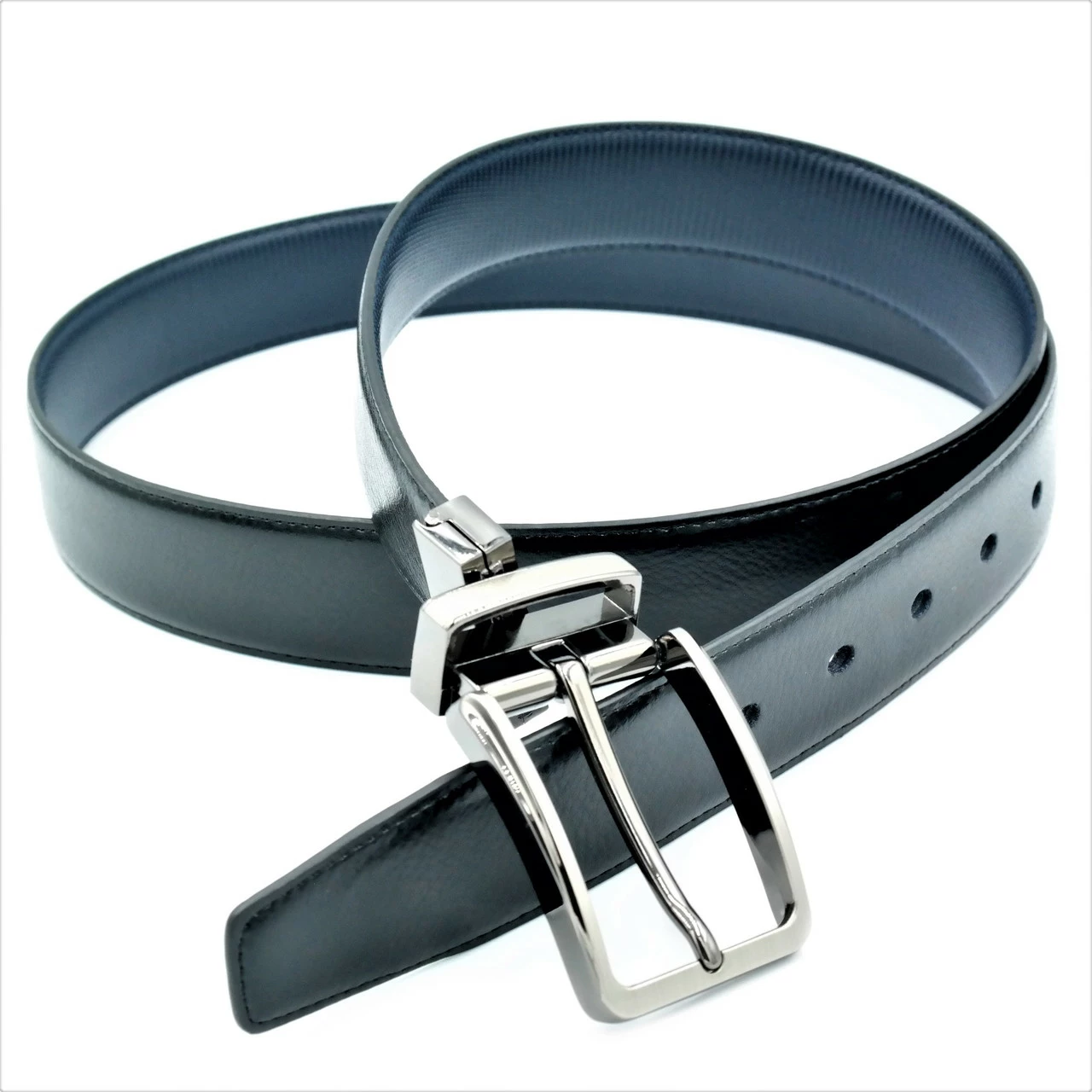 Ремень мужской двухсторонний кожаный, металлическая пряжка, ширина