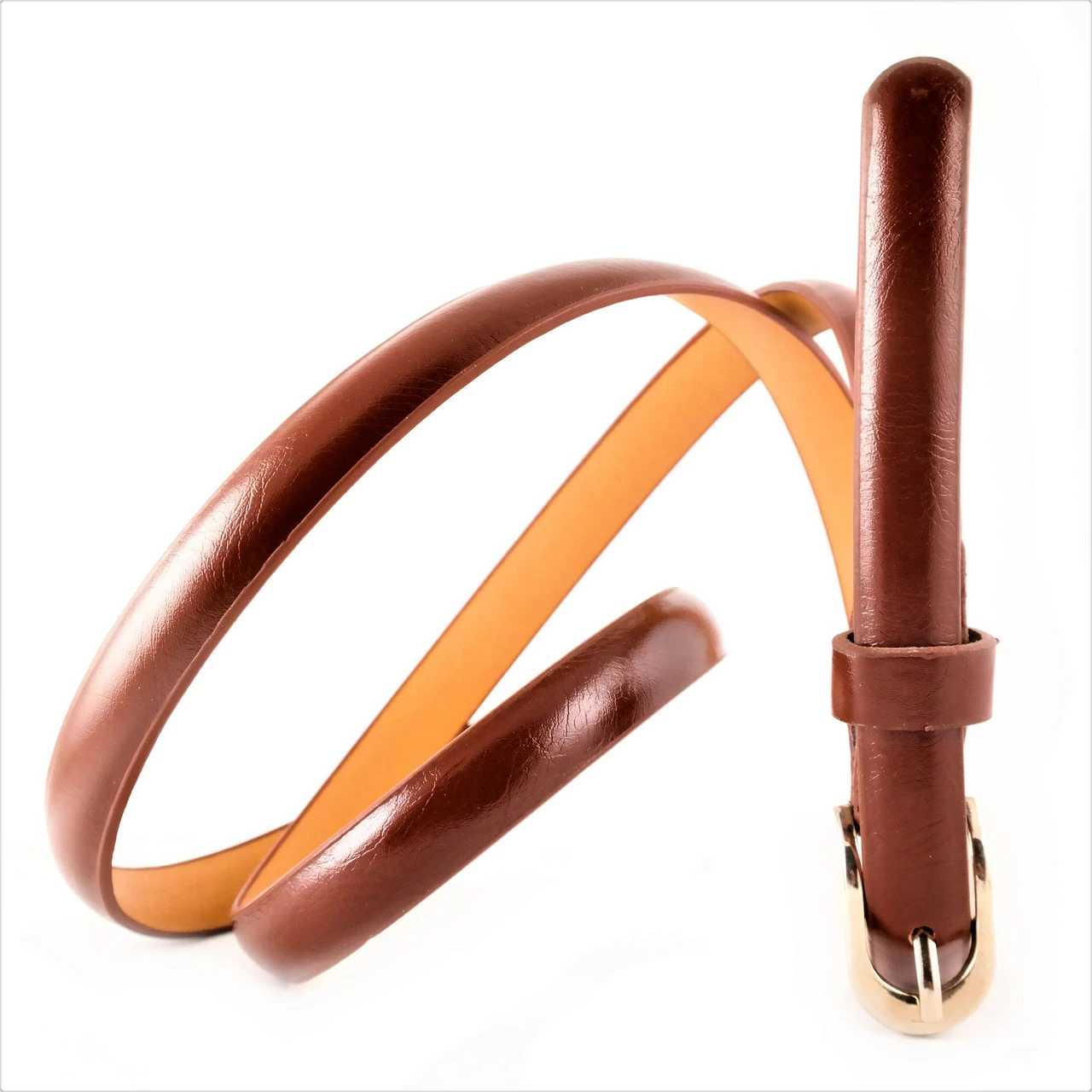 Ремень женский экокожа, ширина 1,5 см. длина 105-110 см. цвет Коричневый