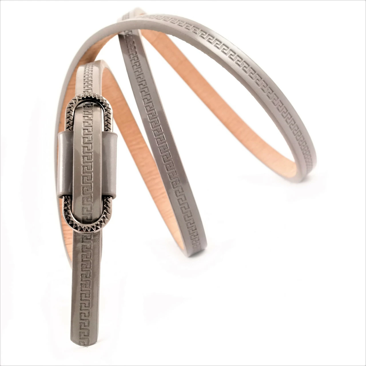 Ремень женский экокожа лак с тиснением, зажимная пряжка, ширина 1