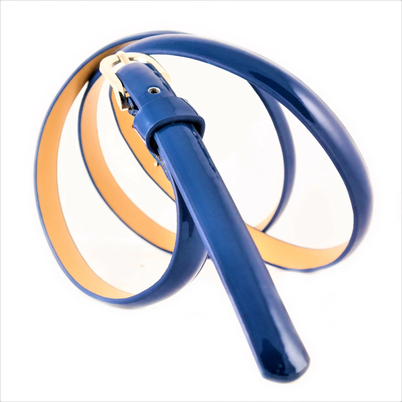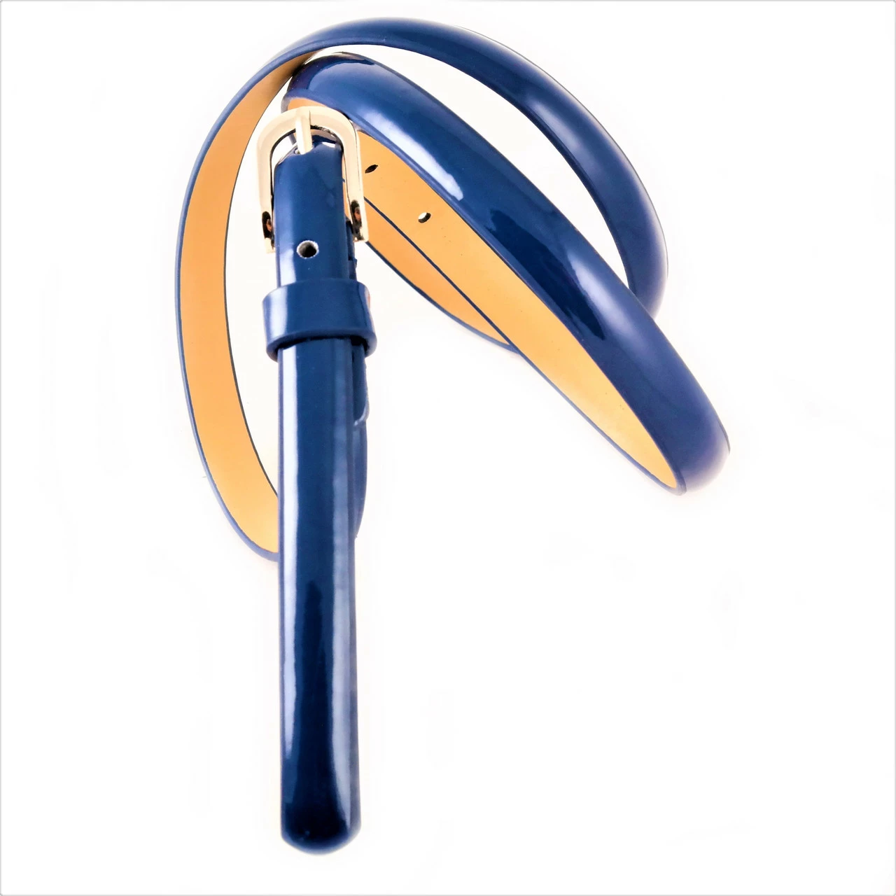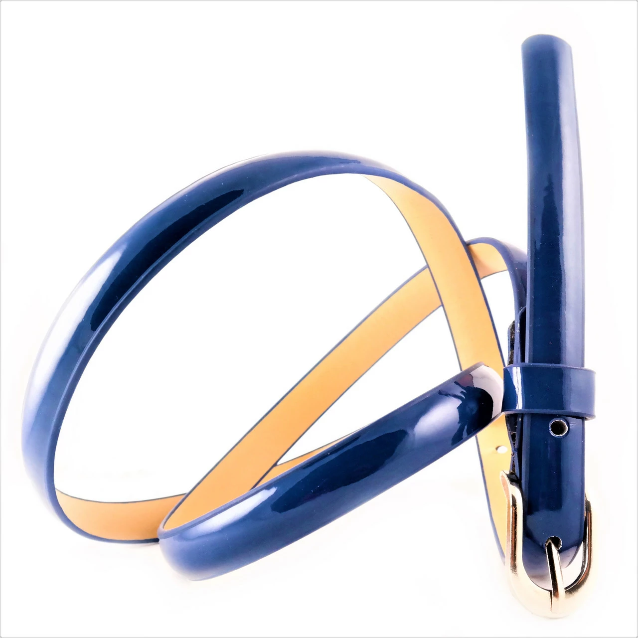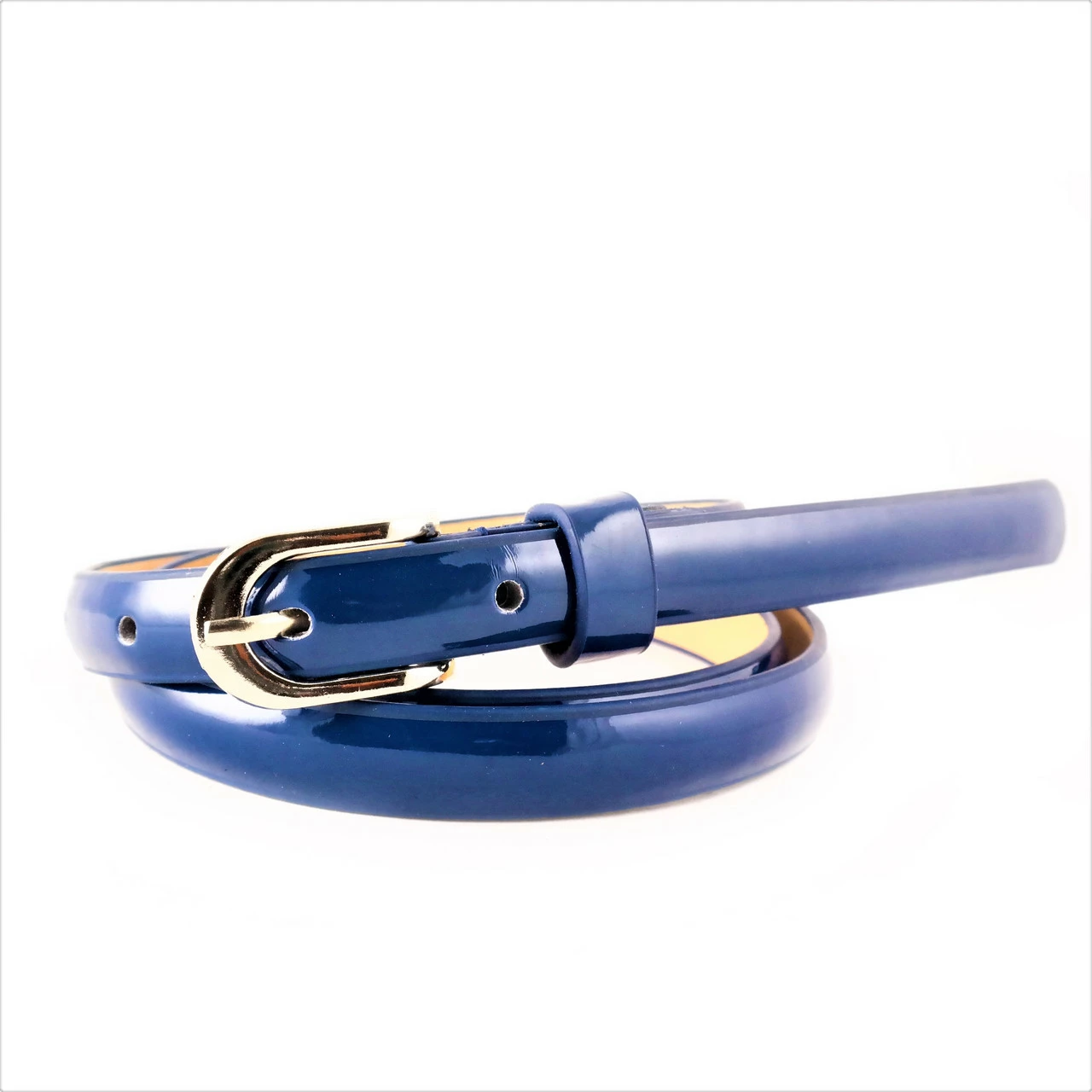 Ремень женский экокожа лак, ширина 1,5 см. длина 105-110 см. цвет Тёмно-синий