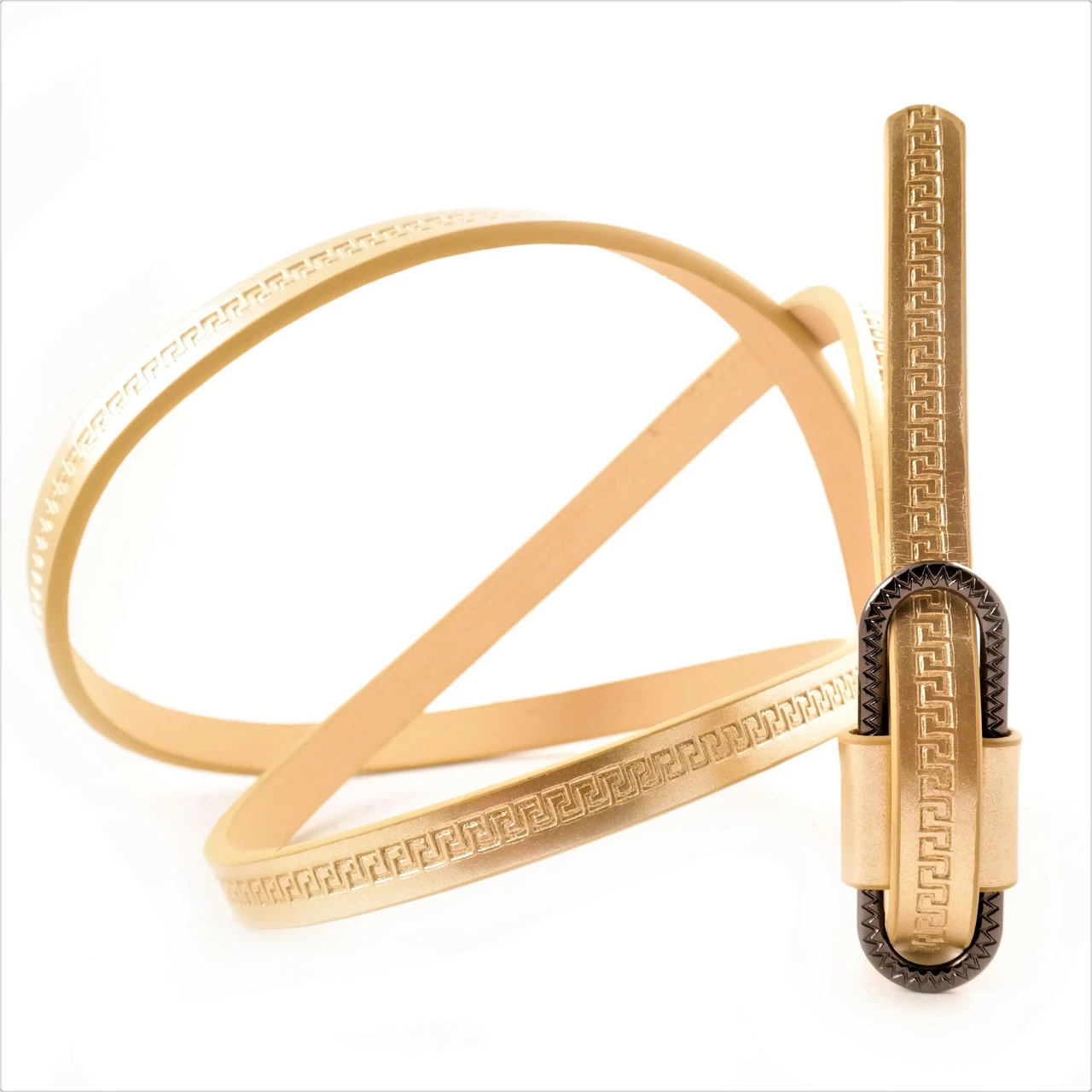 Ремень женский экокожа лак с тиснением, зажимная пряжка, ширина 1