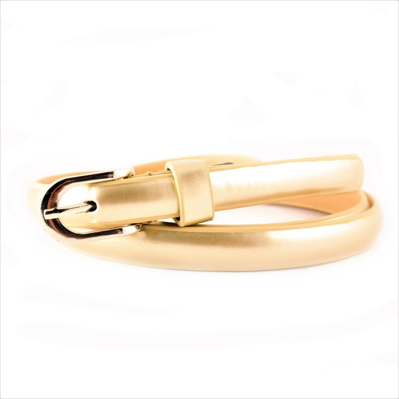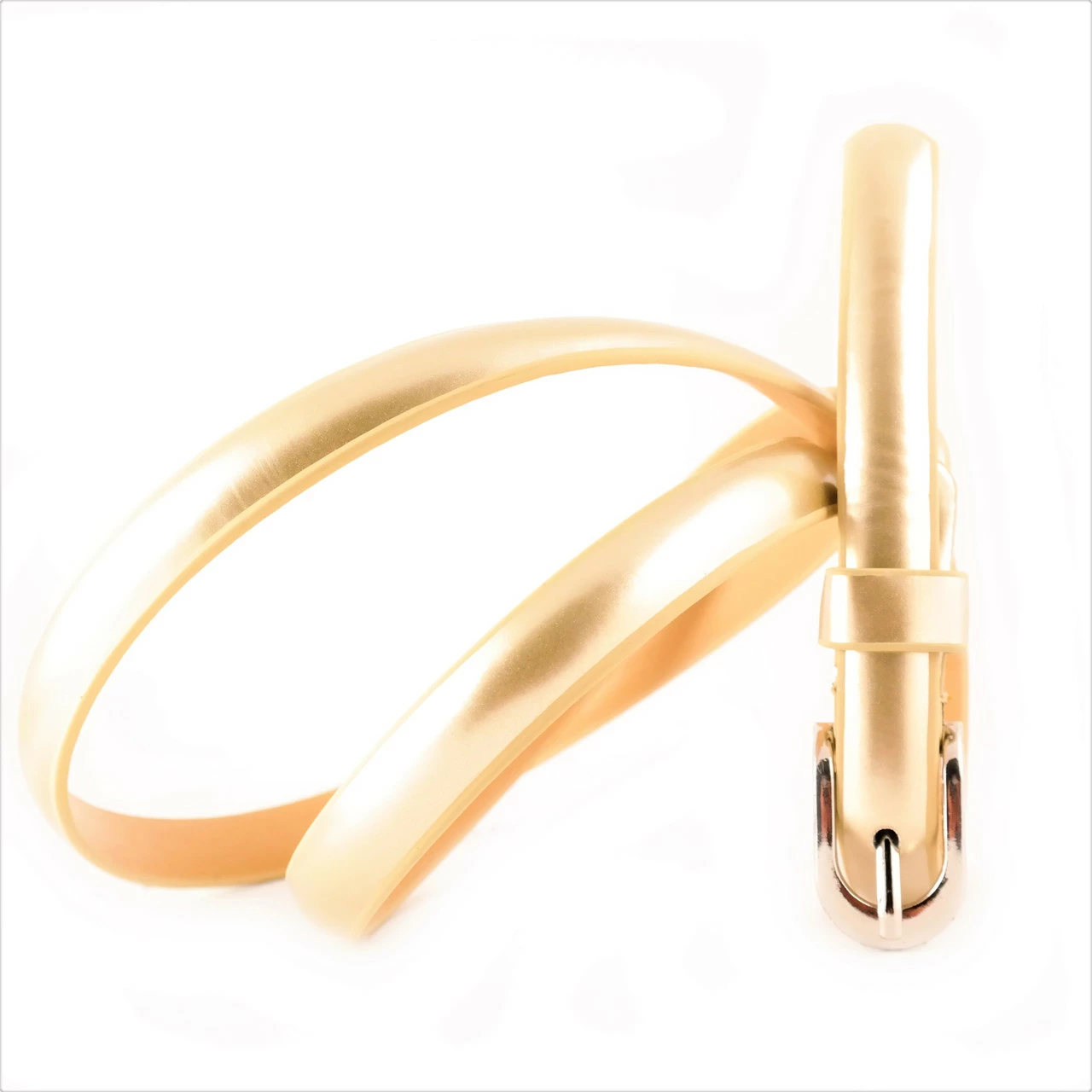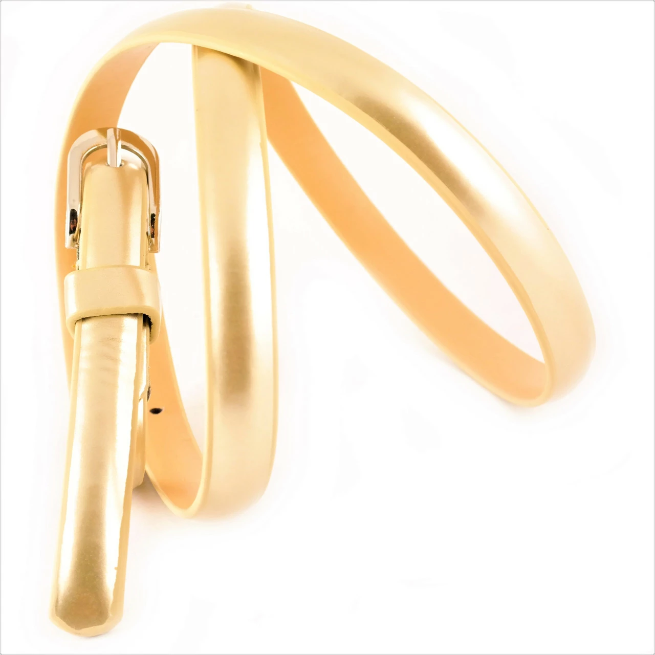 Ремень женский экокожа лак, ширина 1,5 см. длина 105-110 см. цвет Золотистый