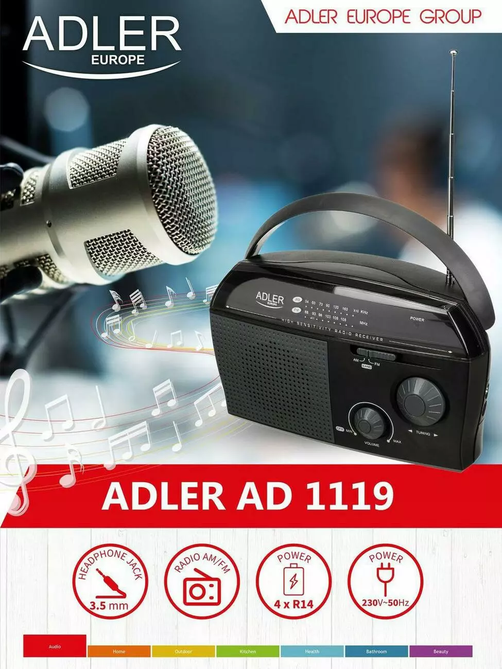 Работает от батареек и от розетки: 4 x R14 or