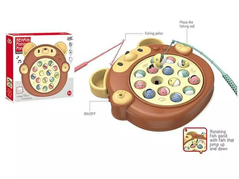 Риболовля 104 C (60) “Ведмедик”, ігрове поле обертається, 15 рибок, 2 вудки, мелодія, від батарейок, в коробці