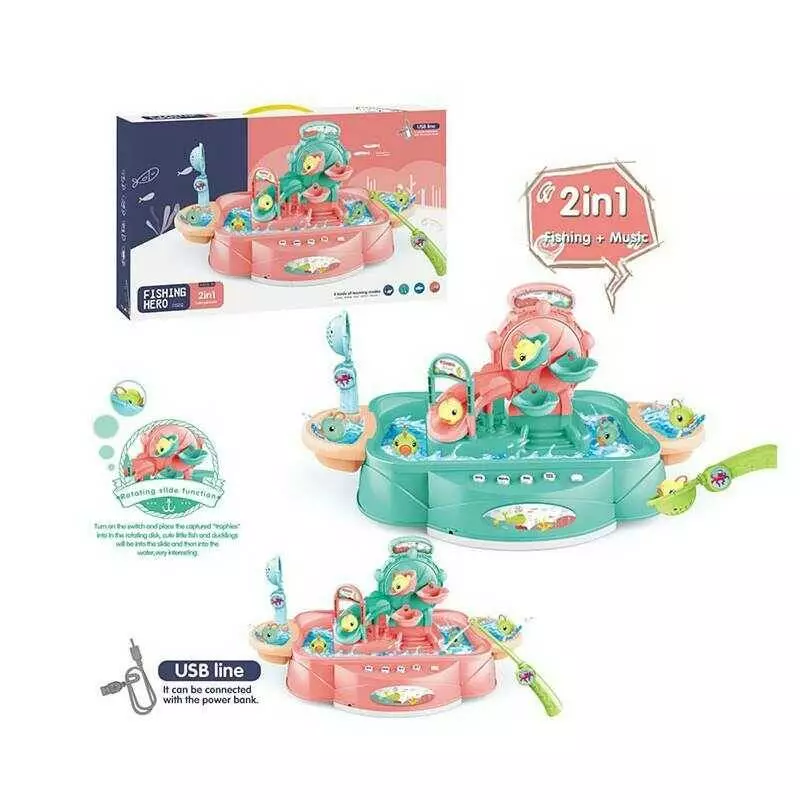Риболовля 156-4 C (18/2) 2 кольори, звук, мелодії, історії, озвучування англійською, 6 рибок, вудка, сачок, в коробці