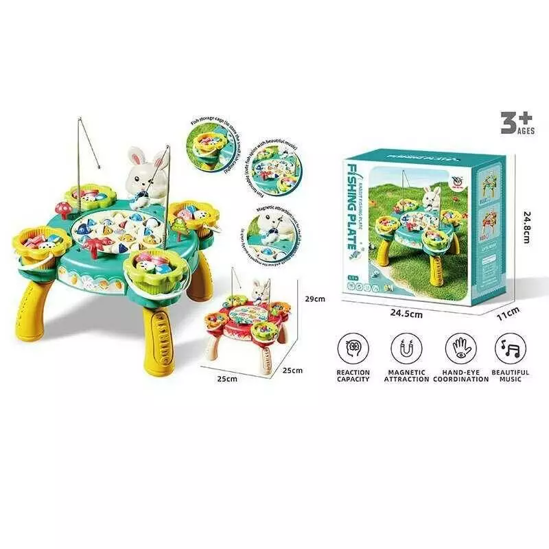 Магнітна риболовля 20258 (24) столик висотою 29 см, платформа обертається, 2 режими: зі звуком та без нього, тваринки на магнітах, відерця, в коробці