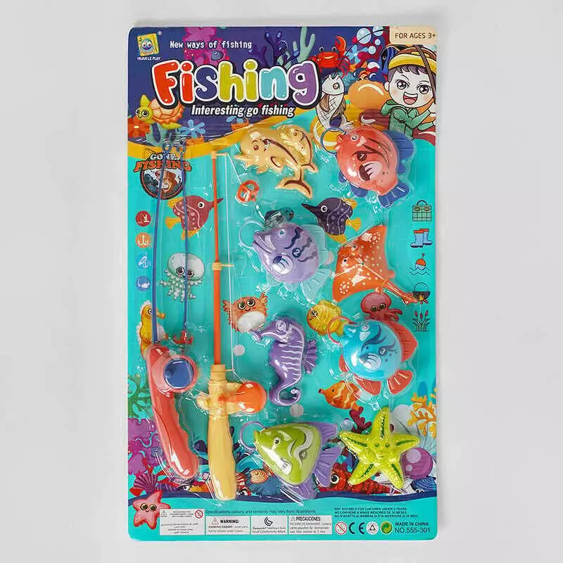Риболовля 555-301 (72/2) магнітна, 8 рибок, 2 вудки, на листі
