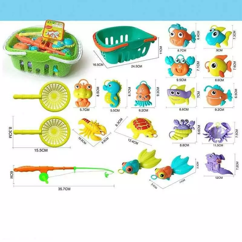 Риболовля QF 338-2 (48/2) 16 фігурок морських мешканців, вудочка, 2 сачки, в кошику, в сітці