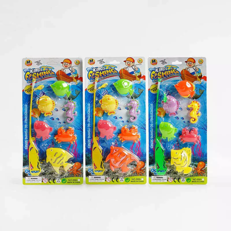 Риболовля з магнітом 886-7-8-9-10 (432/2) 3 види, 6 рибок, вудка, на листі, ВИДАЄТЬСЯ ТІЛЬКИ МІКС ВИДІВ