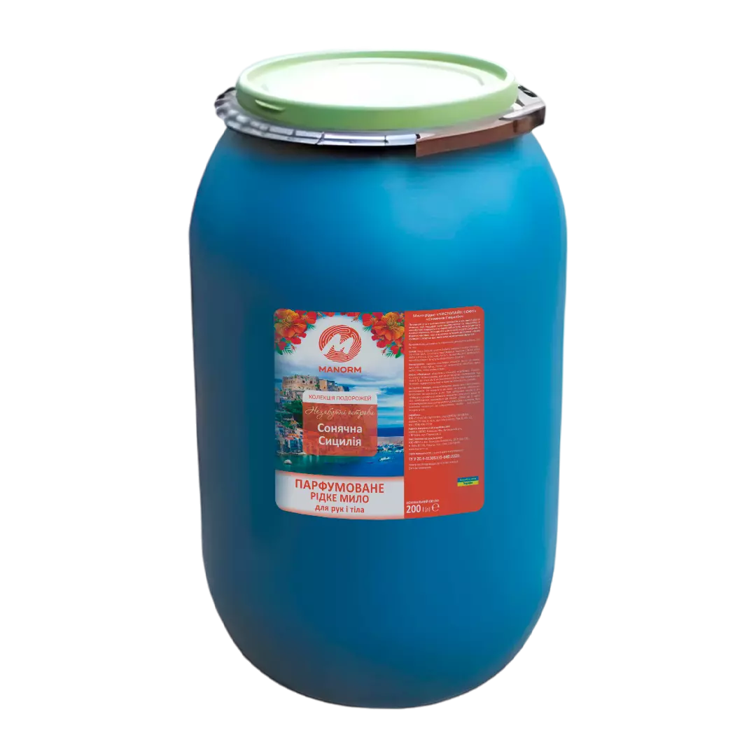 Рідке мило парфумоване Manorm Сонячна Сицилія 200 л (бочка) – це ефективний засіб для щоденної гігієни, який подарує вам відчуття свіжості та комфорту. Його ніжна формула дбайливо очищає шкіру, залишаючи після себе легкий аромат екзотичних фруктів і тропічної свіжості. Це мило ідеально підходить для використання у ванних кімнатах, створюючи атмосферу затишку та приємного догляду.