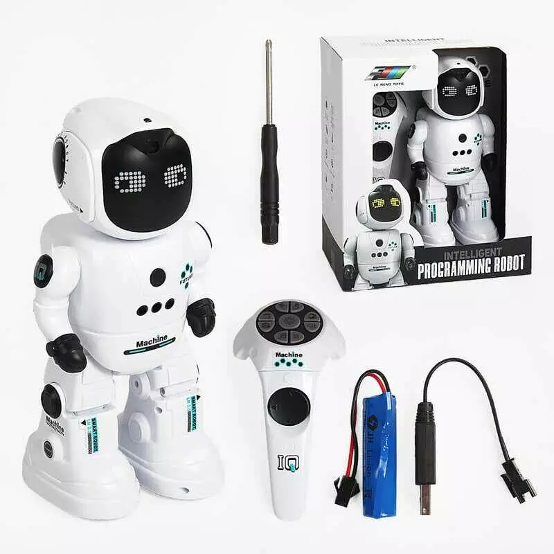 Головна > Каталог > Іграшки > Роботи іграшки > Робот на р/к K 46 (12) звуки, світло, мелодії, рухається, від акум. 3.7 V, режим програмування, реагує на жести та дотик, повертає голову, в коробці оптом